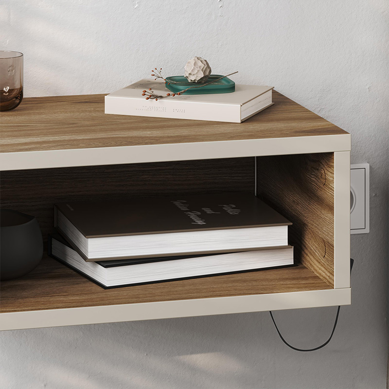 Κομοδίνο επιτοίχιο Brik με LED χρώμα καρυδί - sandstone 45x30x18εκ.