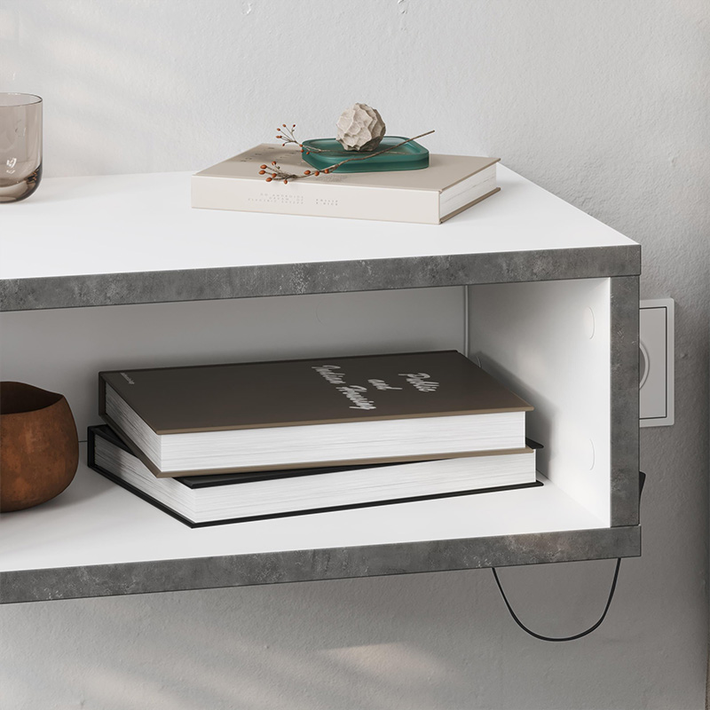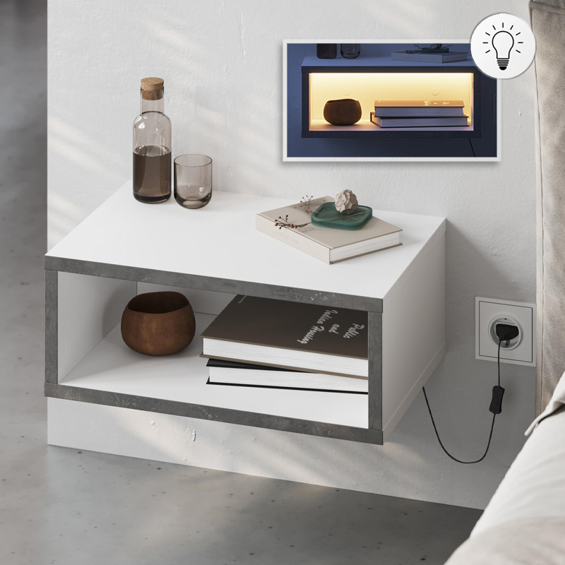 Κομοδίνο επιτοίχιο Brik με LED χρώμα λευκό - γκρι ρετρό 45x30x18εκ.