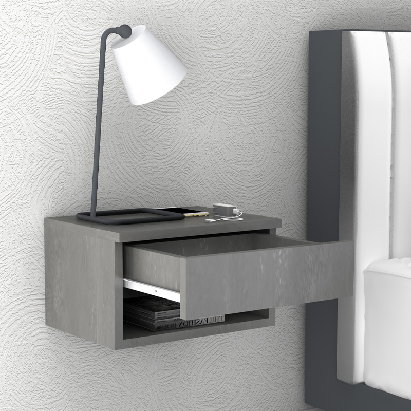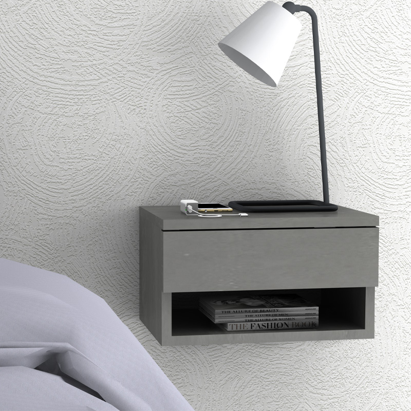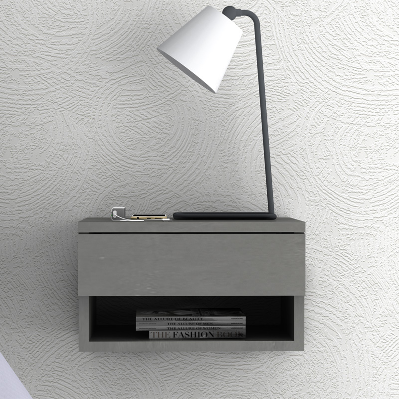 Κομοδίνο επιτοίχιο Mary χρώμα γκρι σκυροδέματος 40x30x23εκ.