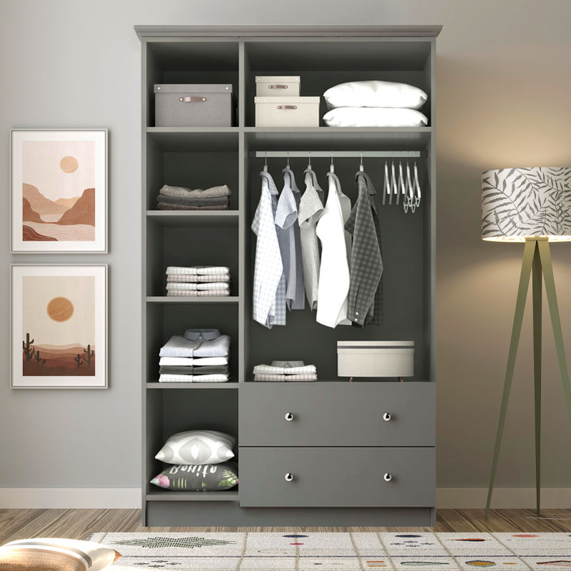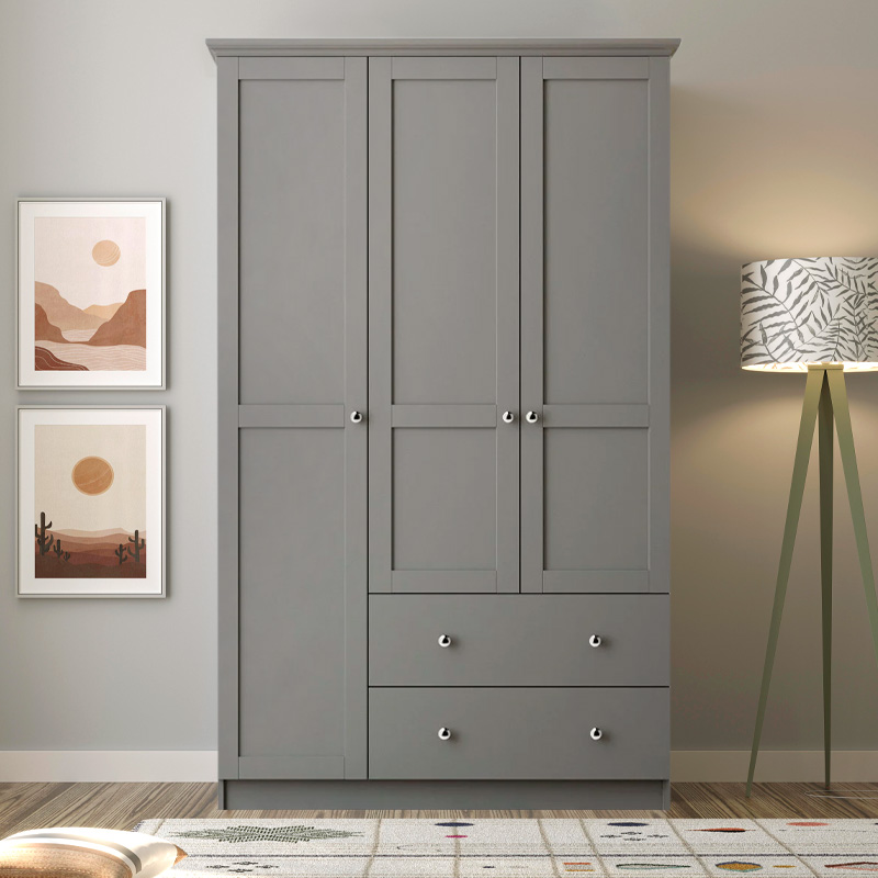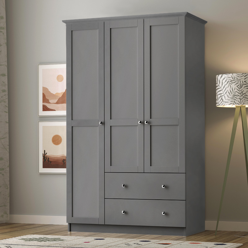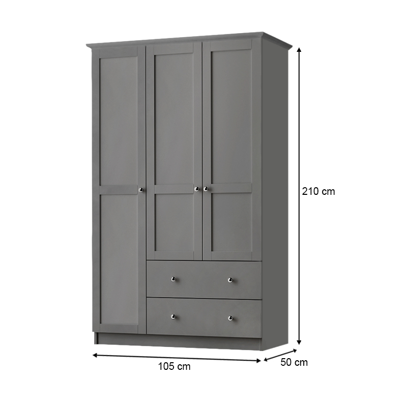 Ντουλάπα ρούχων Emily τρίφυλλη με συρτάρια χρώμα ανθρακί 105x50x210εκ.
