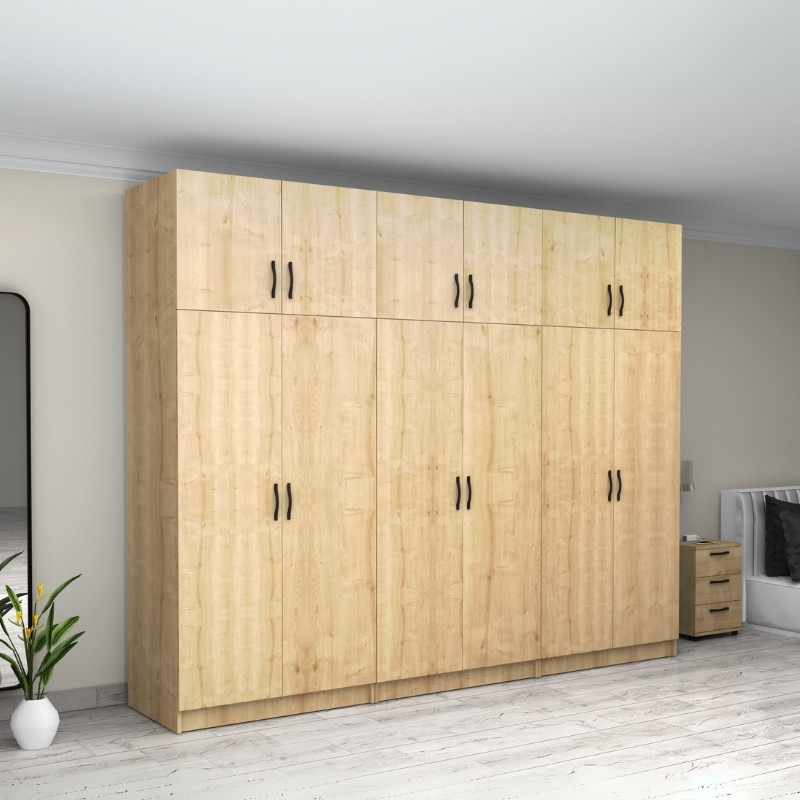 Ντουλάπα ρούχων Victoria εξάφυλλη με πατάρι χρώμα φυσικό οξιάς 300x60x240εκ.