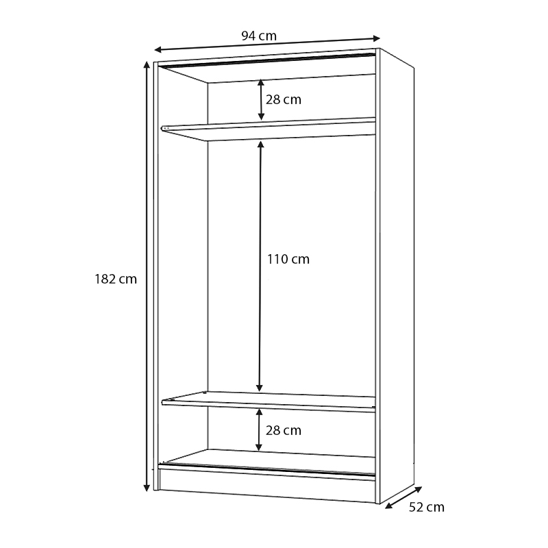 Ντουλάπα ρούχων Misra δίφυλλη συρόμενη χρώμα φυσικό οξιάς 94x52x182εκ.
