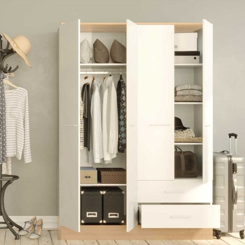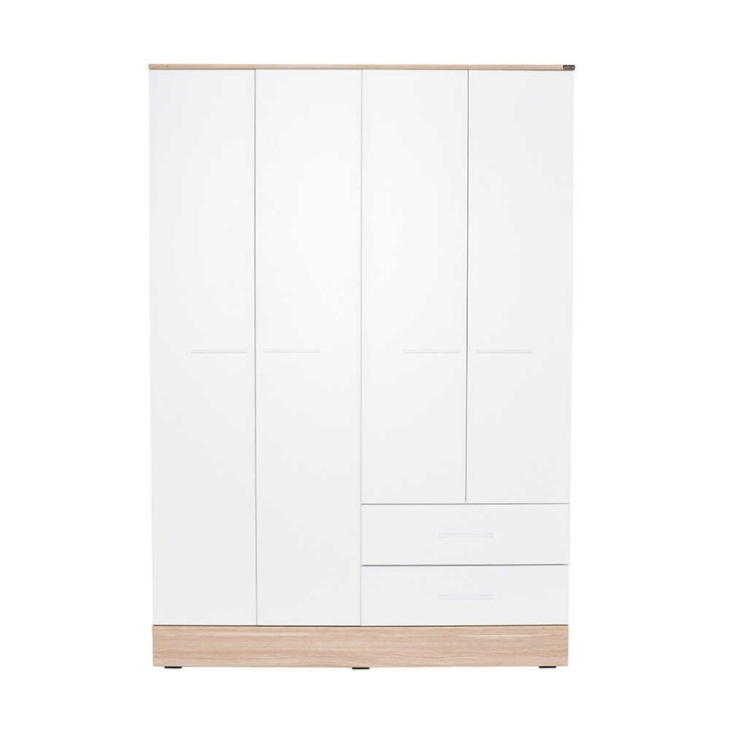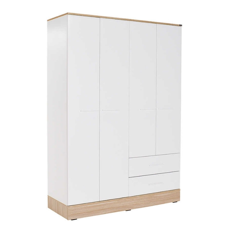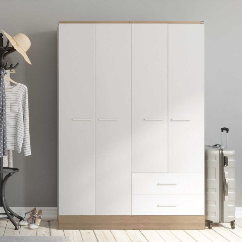 Ντουλάπα ρούχων Base τετράφυλλη με συρτάρια χρώμα λευκό - sonoma 137x52x198εκ.