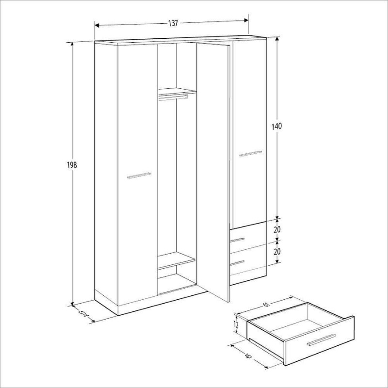 - Διαστάσεις: Μήκος 137 x Βάθος 52 x Ύψος 198 εκ.
