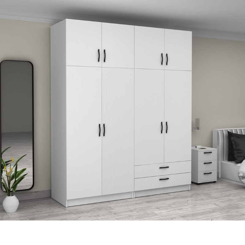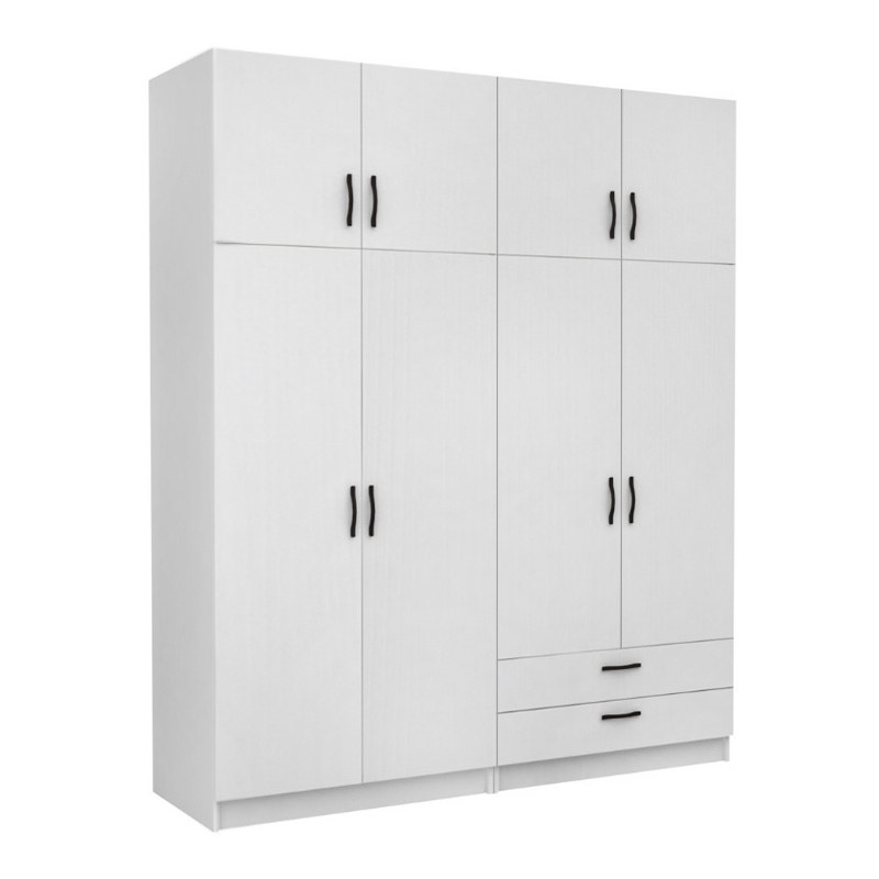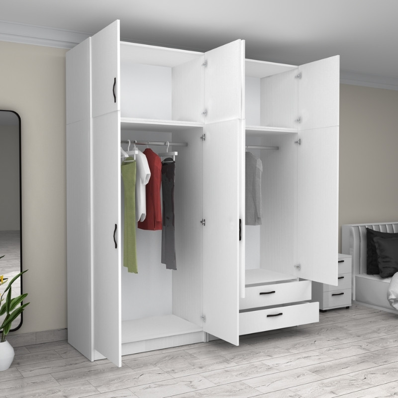 Ντουλάπα ρούχων Victoria τετράφυλλη με πατάρι και συρτάρια χρώμα λευκό 200x60x240εκ.