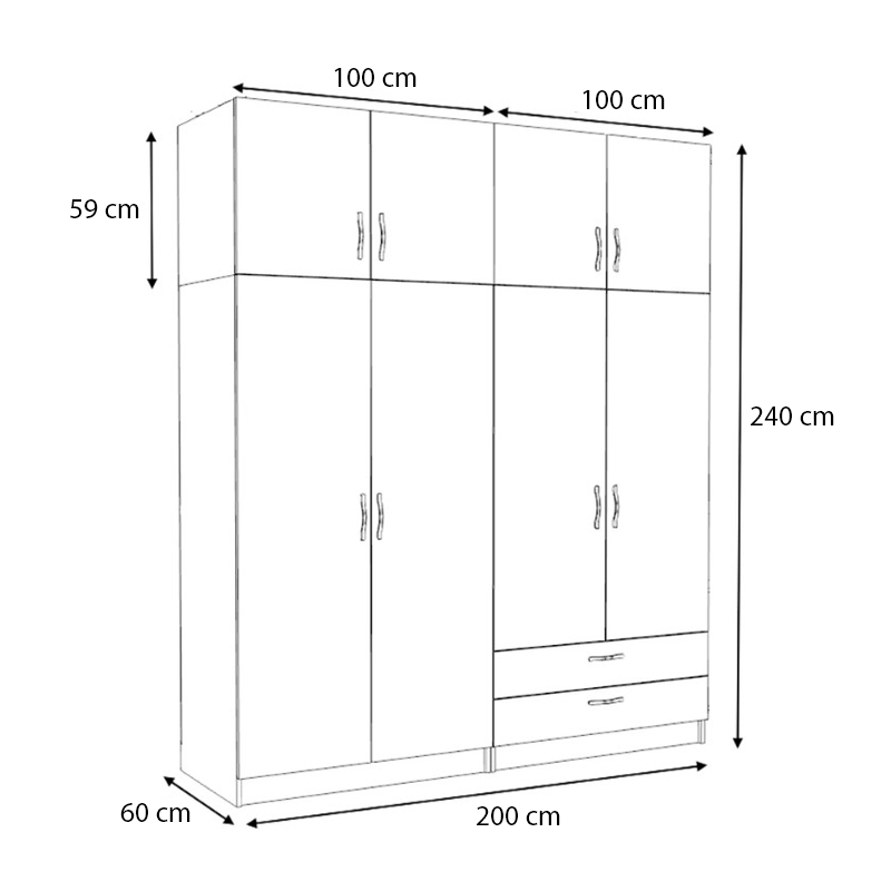 - Διαστάσεις ντουλάπας: Μήκος 200 x Βάθος 60 x Ύψος 181 εκ.