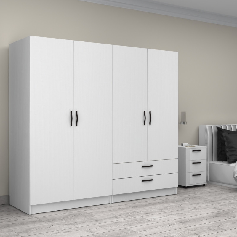 Ντουλάπα ρούχων Victoria τετράφυλλη με συρτάρια χρώμα λευκό 200x60x181εκ.