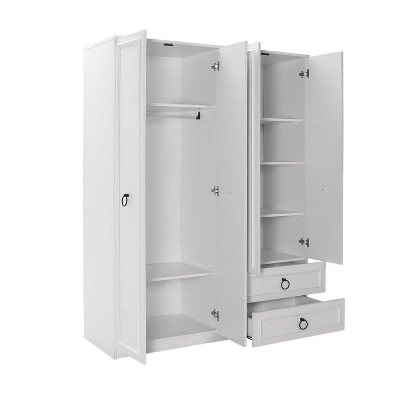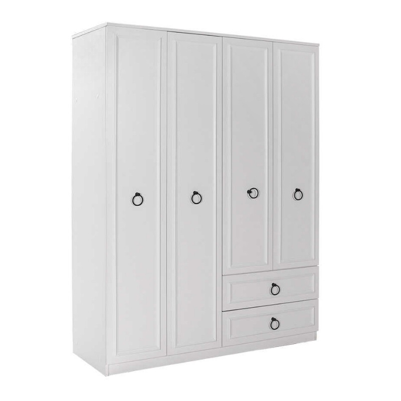 Ντουλάπα ρούχων Hampton τετράφυλλη με συρτάρια χρώμα λευκό 140x52x185εκ.