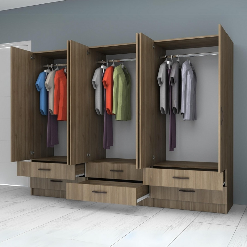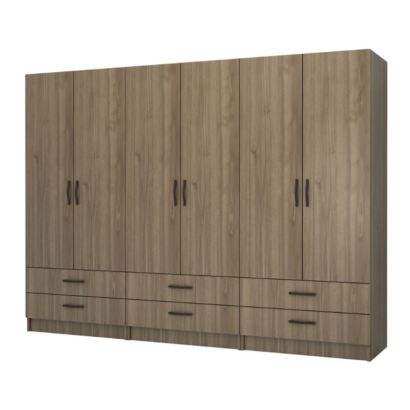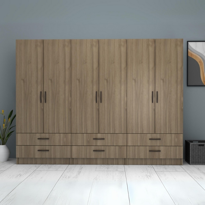 Ντουλάπα ρούχων Ricardo εξάφυλλη με συρτάρια χρώμα καρυδί 240x51,8x181εκ.