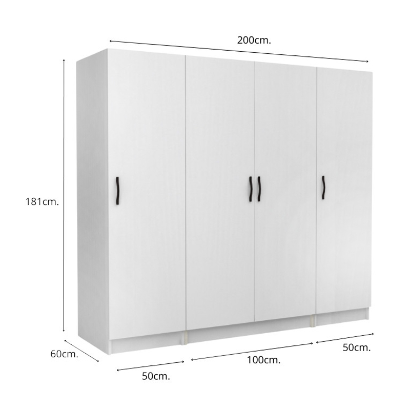 Ντουλάπα ρούχων Victoria τετράφυλλη χρώμα λευκό 200x60x181εκ.