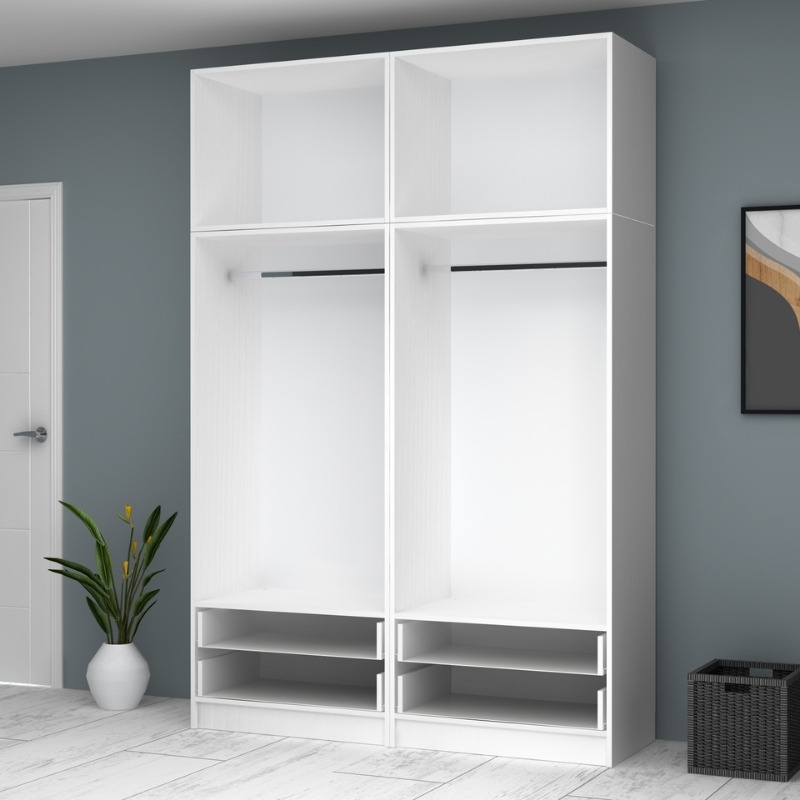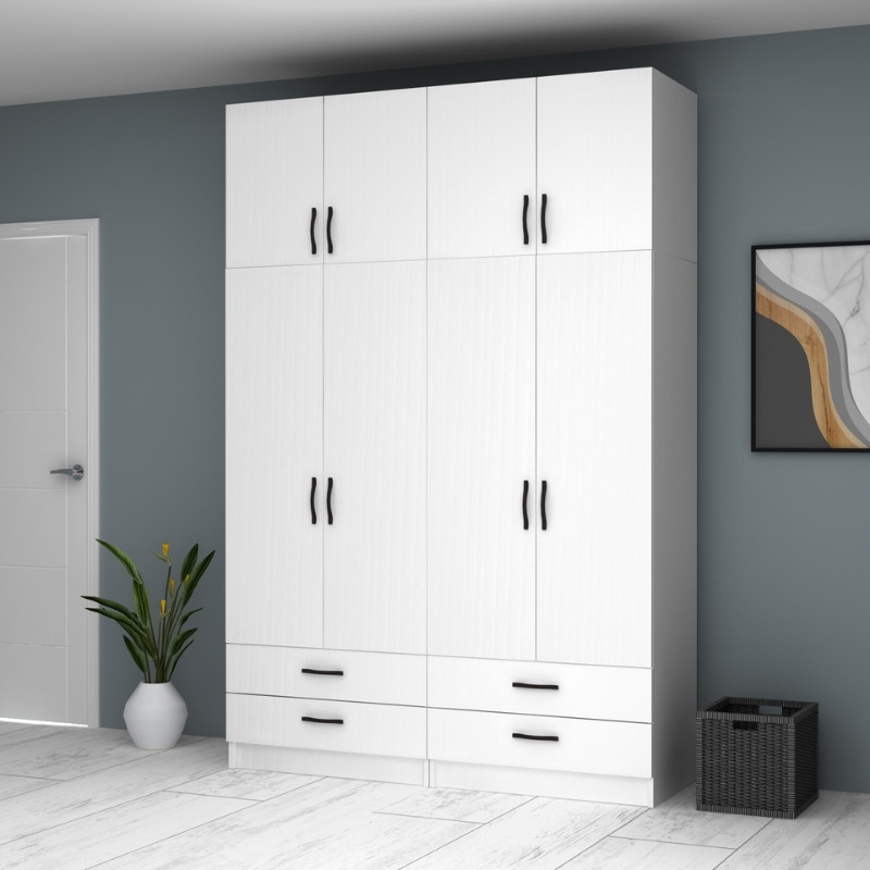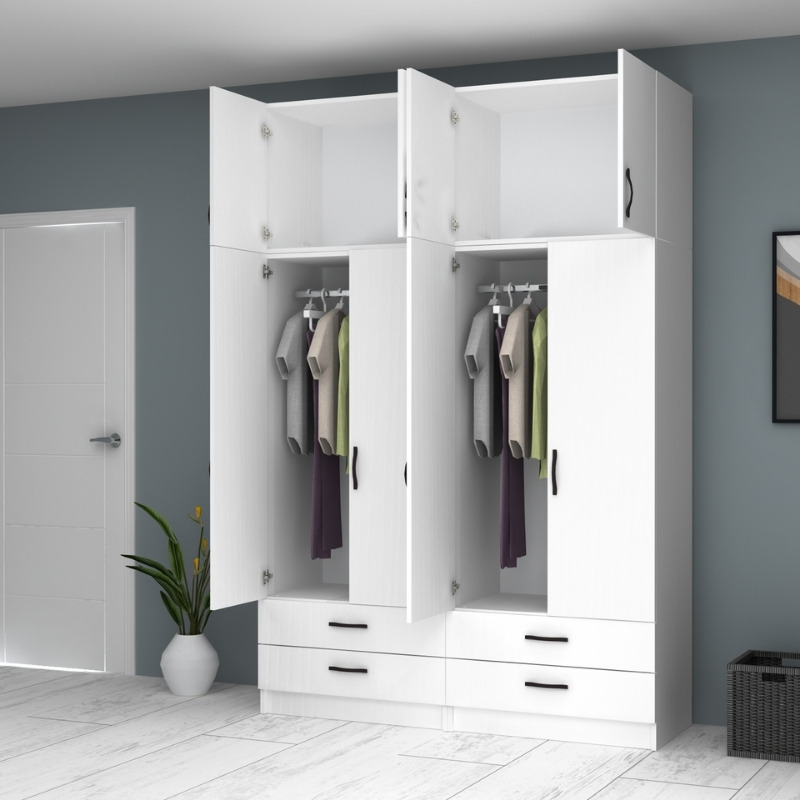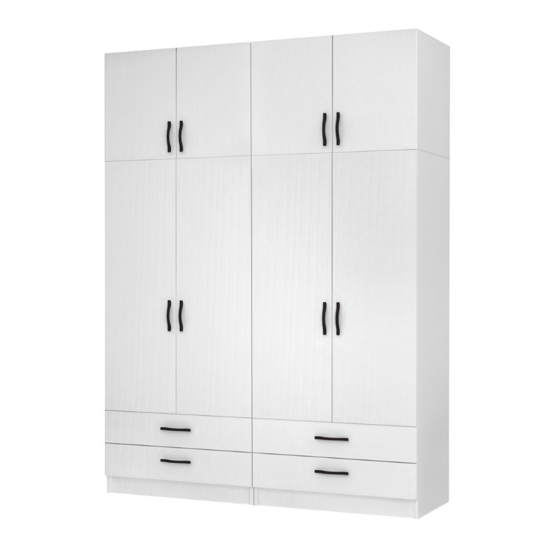 Ντουλάπα ρούχων Ricardo τετράφυλλη με πατάρι και συρτάρια χρώμα λευκό 160x51,8x240εκ.
