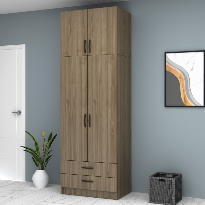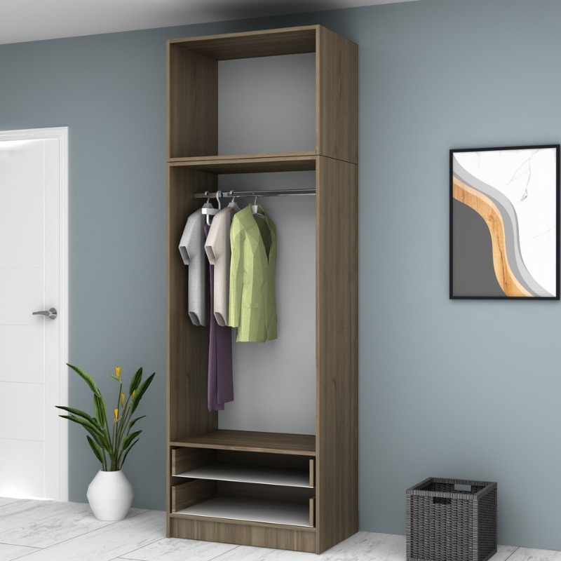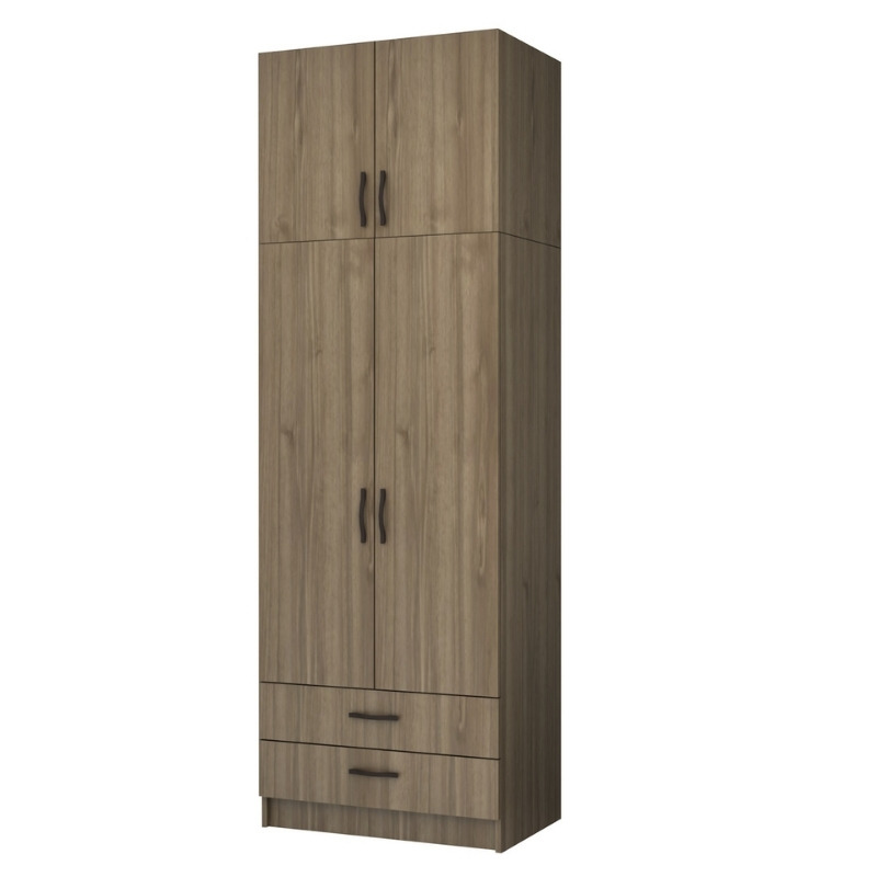 Ντουλάπα ρούχων Ricardo δίφυλλη με πατάρι και συρτάρια χρώμα καρυδί 80x51,8x240εκ.