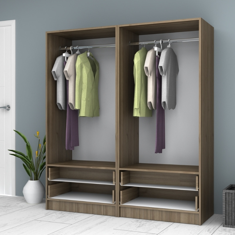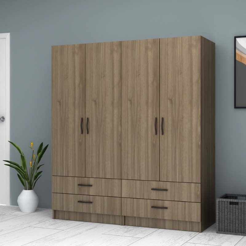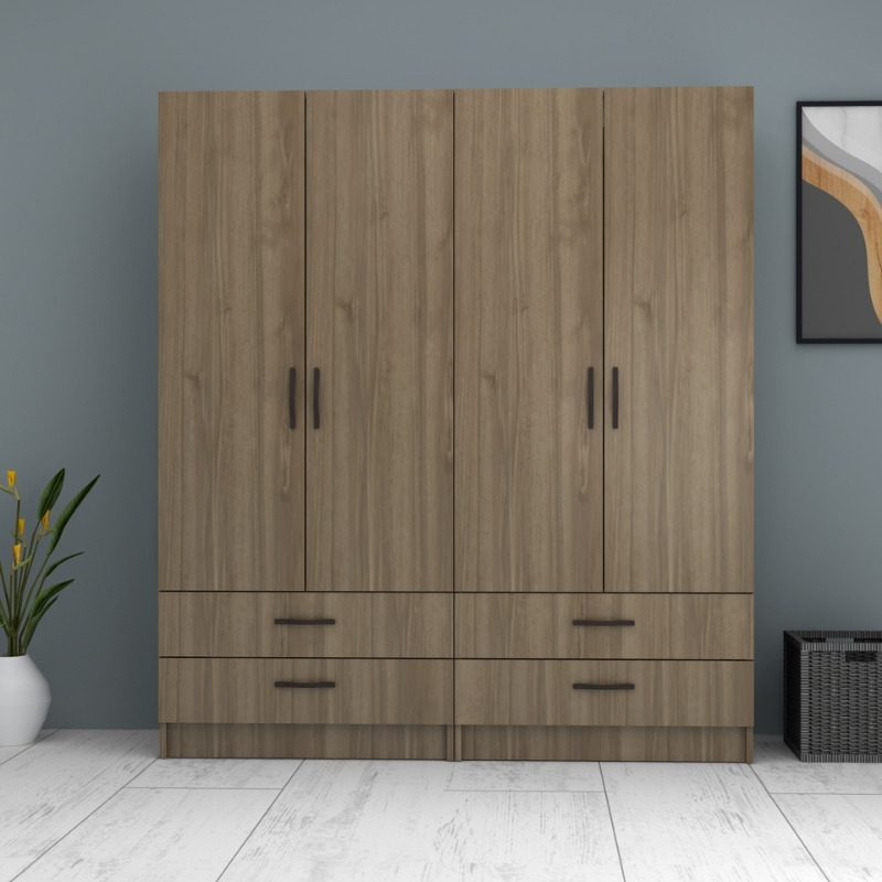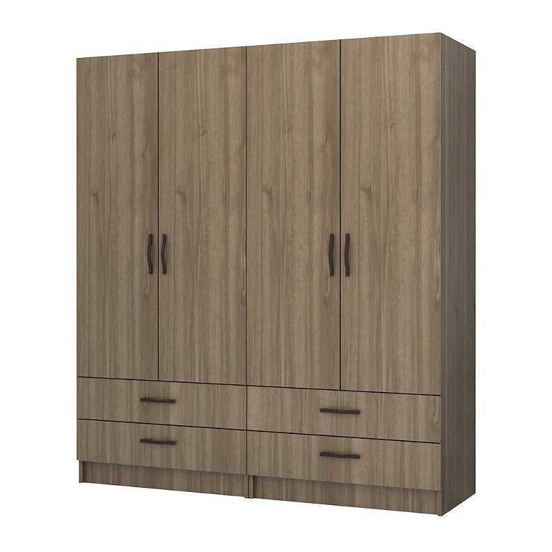 Ντουλάπα ρούχων Ricardo τετράφυλλη με συρτάρια χρώμα καρυδί 160x51,8x181εκ.