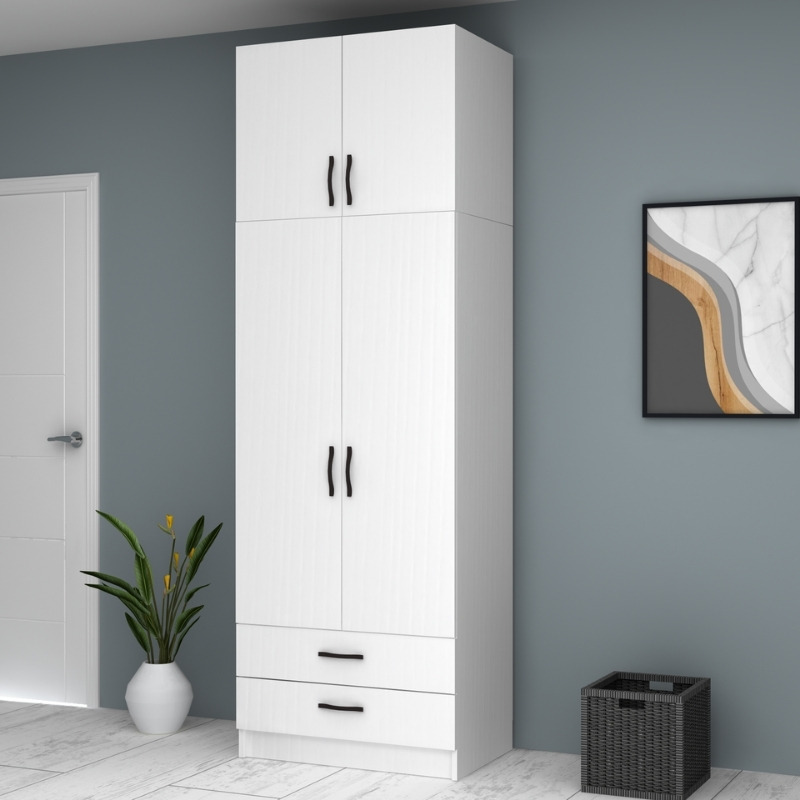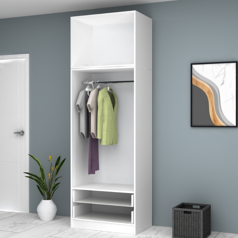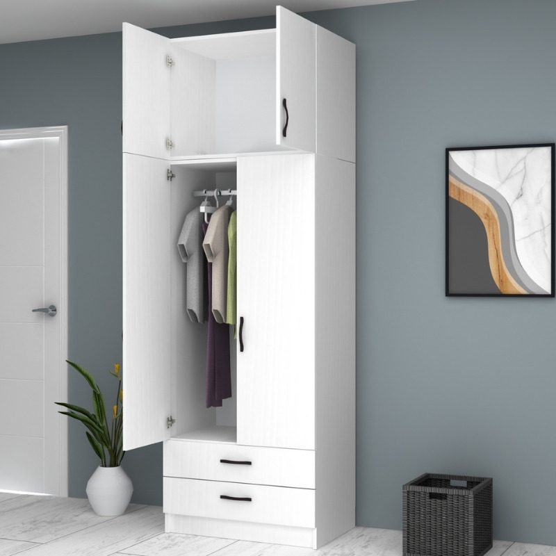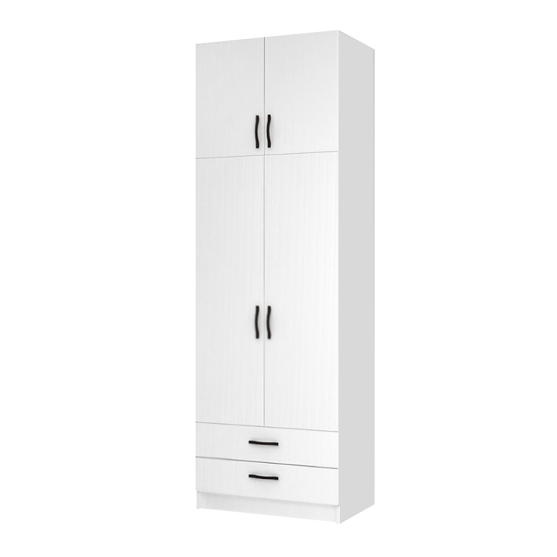 Ντουλάπα ρούχων Ricardo δίφυλλη με πατάρι και συρτάρια χρώμα λευκό 80x51,8x240εκ.
