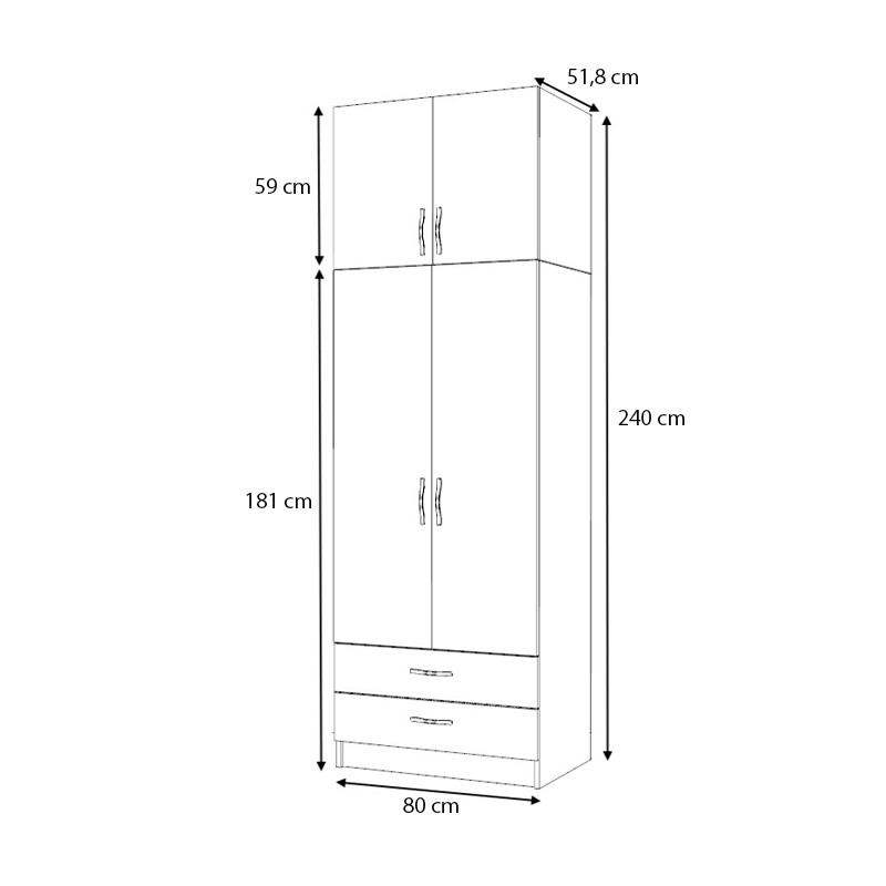 - Διαστάσεις ντουλάπας: Μήκος 80 x Βάθος 51,8 x Ύψος 181 εκ.