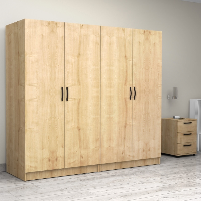 Ντουλάπα ρούχων Victoria τετράφυλλη χρώμα φυσικό οξιάς 200x60x181εκ.