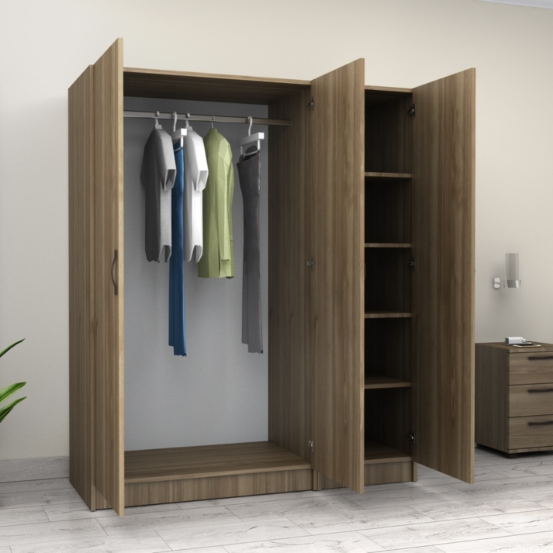 Ντουλάπα ρούχων Victoria τρίφυλλη χρώμα καρυδί 150x60x181εκ.