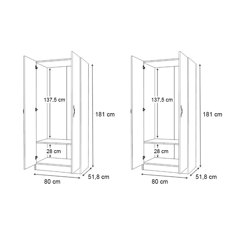 - Διαστάσεις ντουλάπας: Μήκος 160 x Βάθος 51,8 x Ύψος 181 εκ.