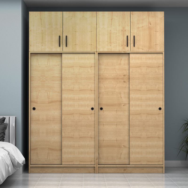 Ντουλάπα ρούχων Regio τετράφυλλη συρόμενη με πατάρι χρώμα φυσικό οξιάς 200x60x240εκ.