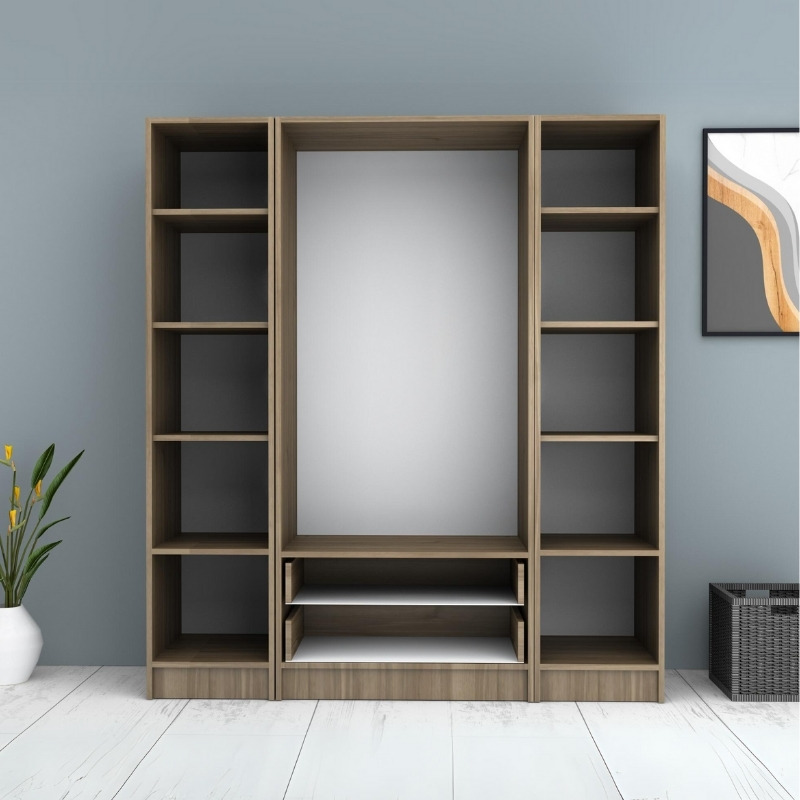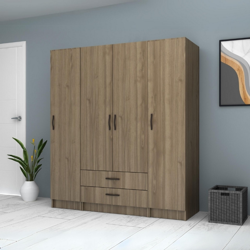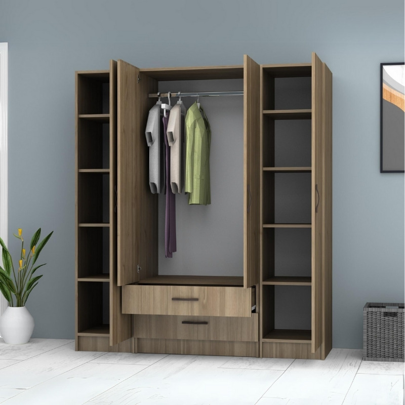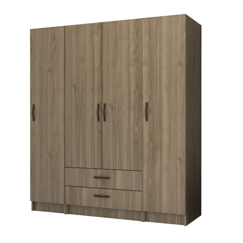 Ντουλάπα ρούχων Ricardo τετράφυλλη με συρτάρια χρώμα καρυδί 160x51,8x181εκ.