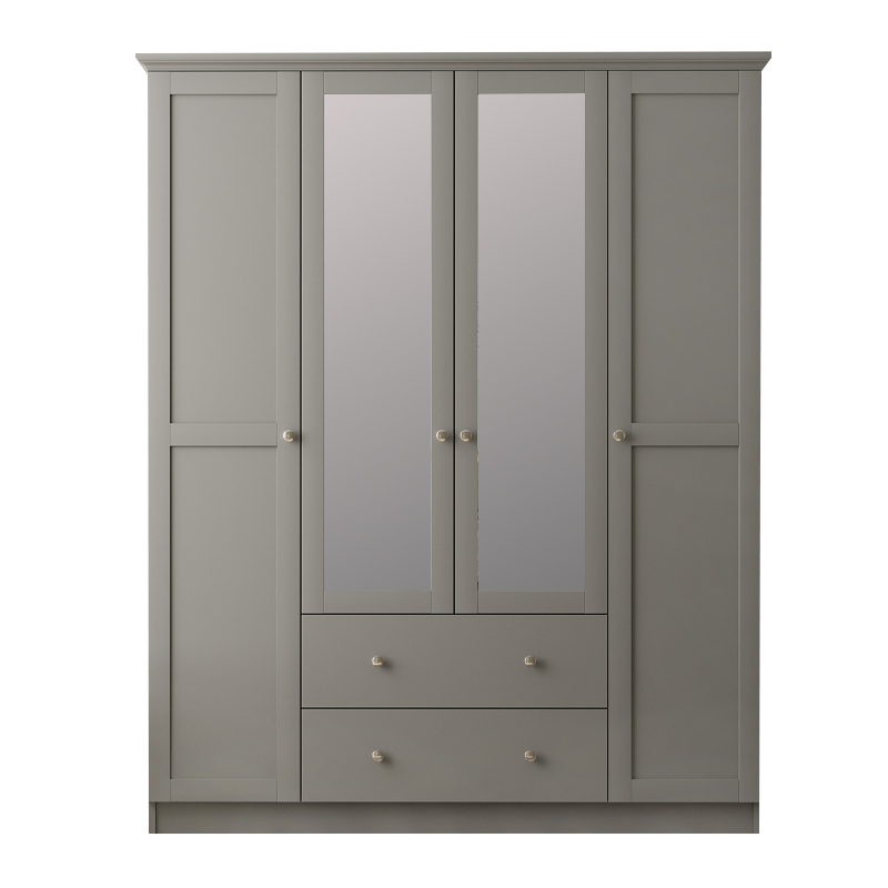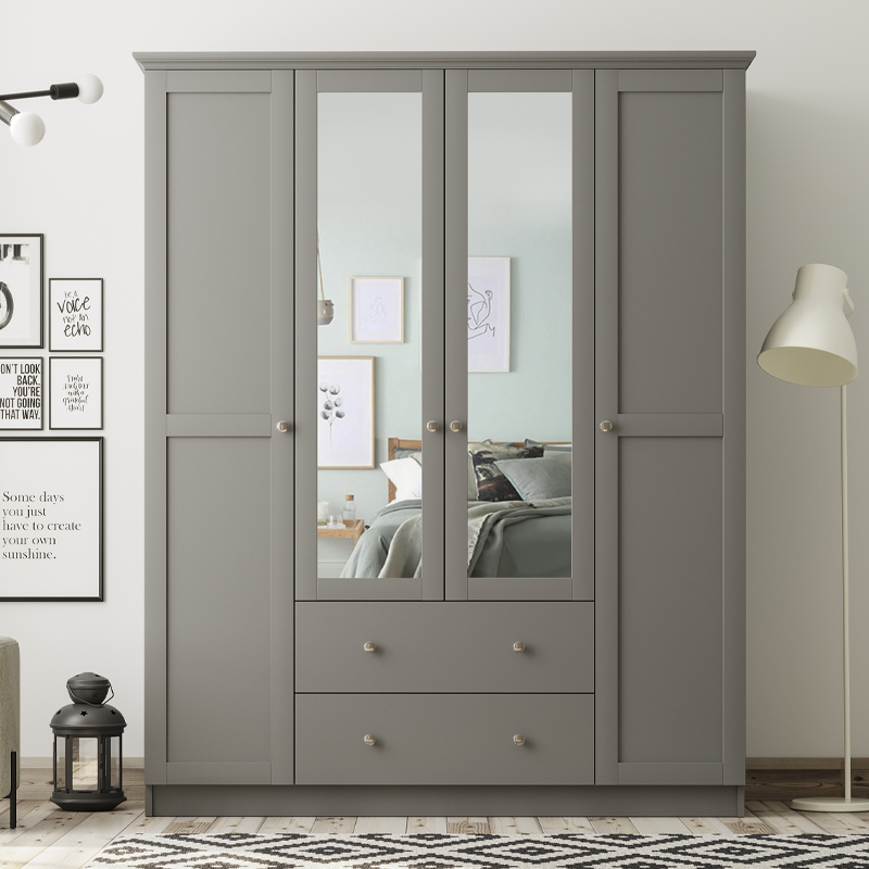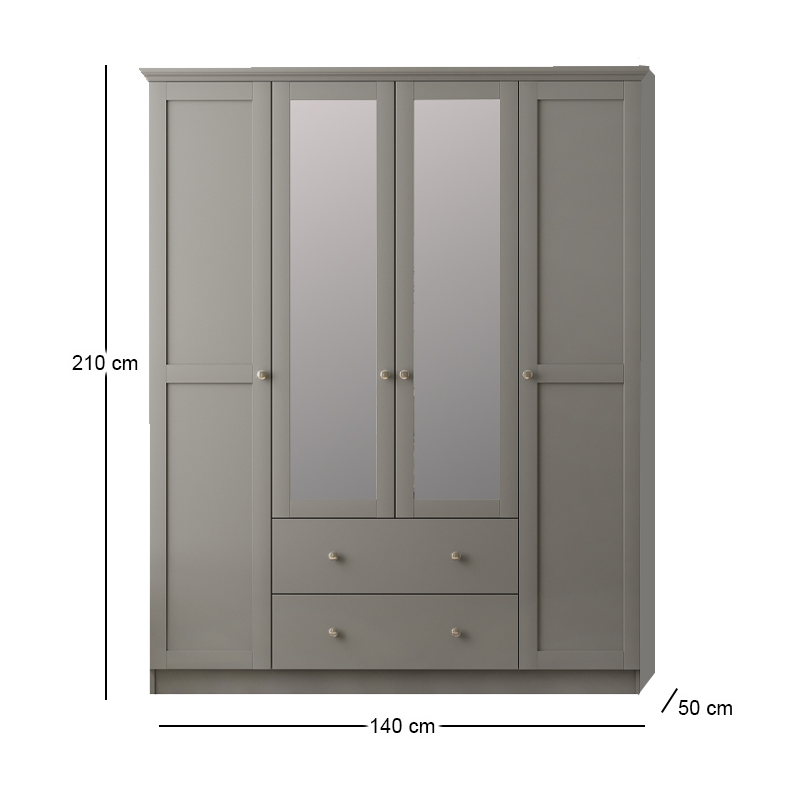 Ντουλάπα ρούχων Emily τετράφυλλη με καθρέπτη και συρτάρια χρώμα ανθρακί 140x50x210εκ.