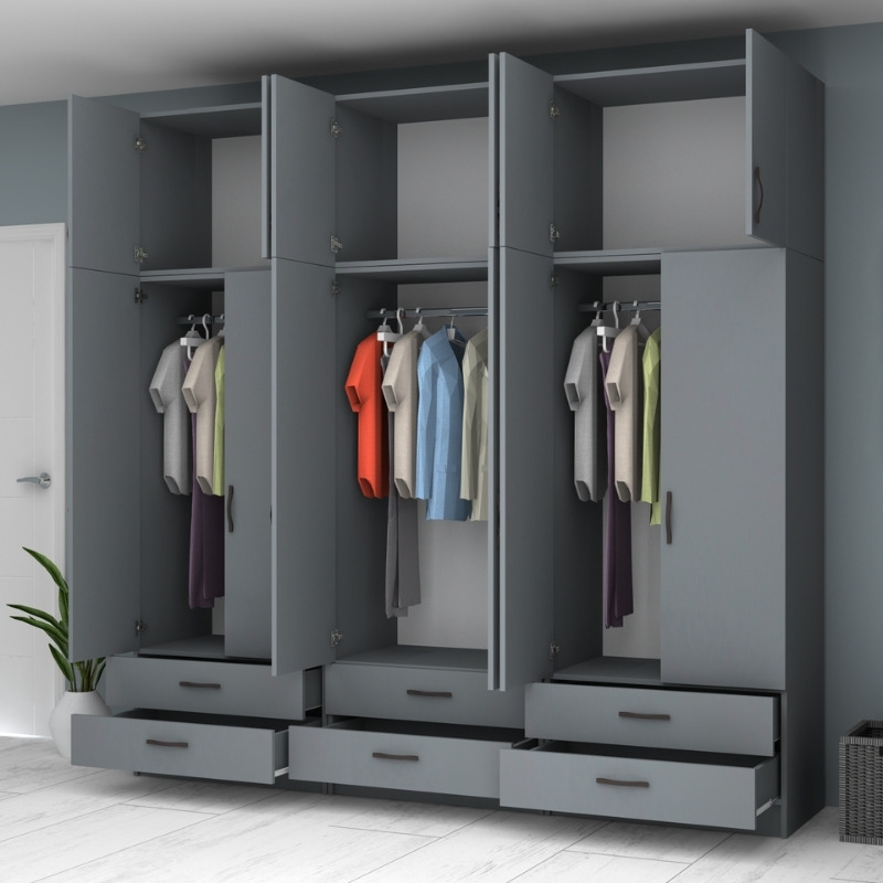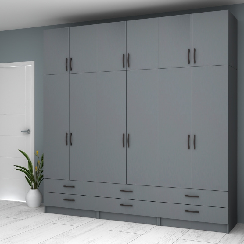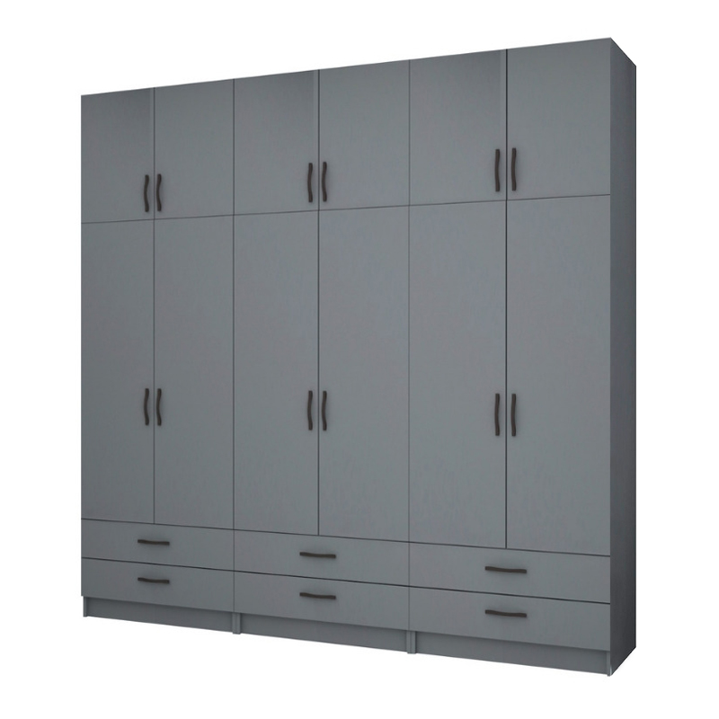 Ντουλάπα ρούχων Ricardo εξάφυλλη με πατάρι και συρτάρια χρώμα ανθρακί 240x51,8x240εκ.