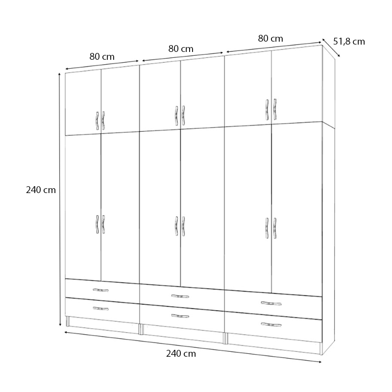 - Διαστάσεις ντουλάπας: Μήκος 240 x Βάθος 51,8 x Ύψος 181 εκ.