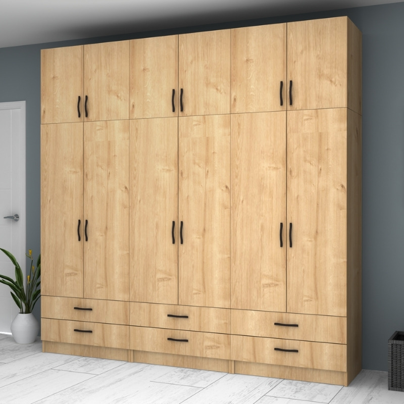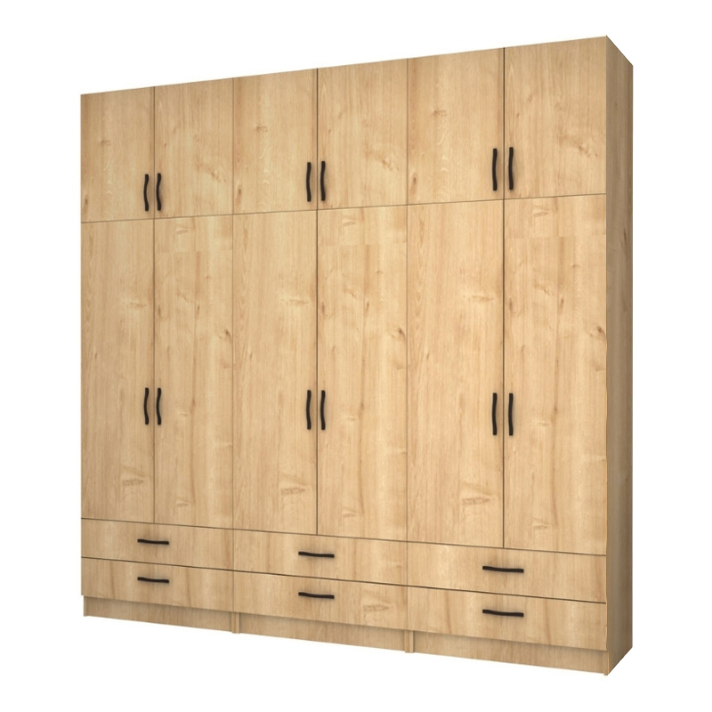 Ντουλάπα ρούχων Ricardo εξάφυλλη με πατάρι και συρτάρια χρώμα φυσικό οξιάς 240x51,8x240εκ.