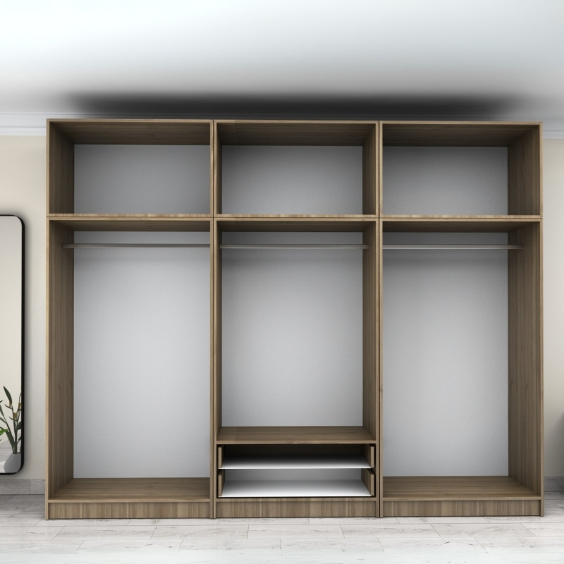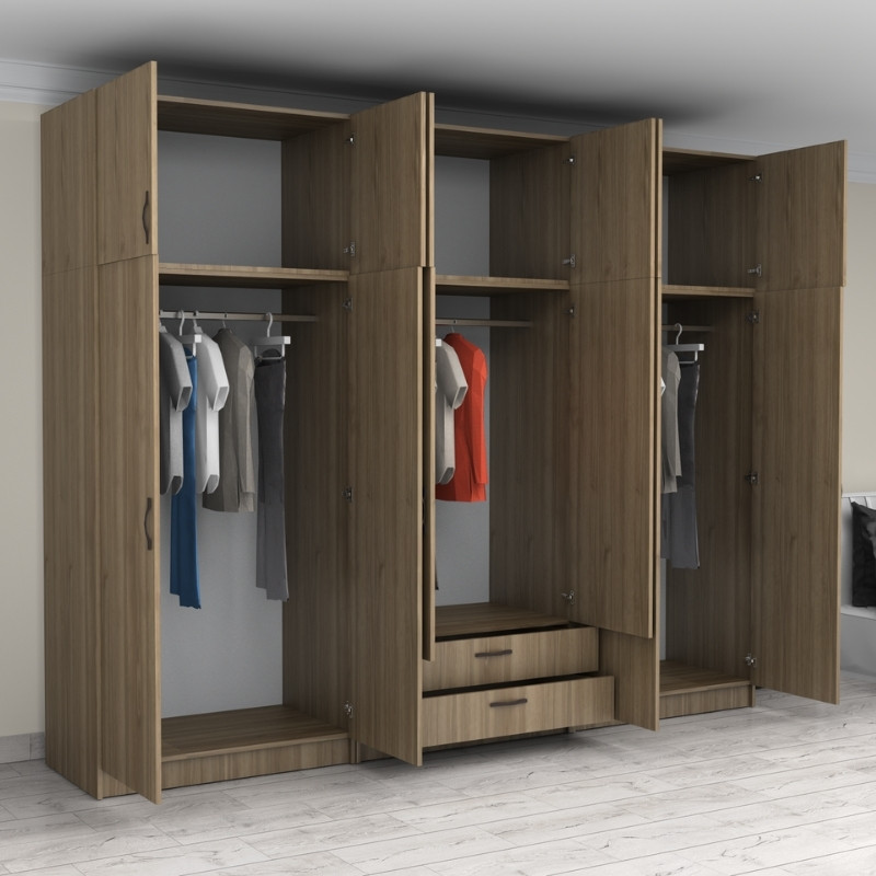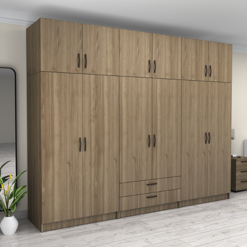 Ντουλάπα ρούχων Victoria εξάφυλλη με πατάρι και συρτάρια χρώμα καρυδί 300x60x240εκ.