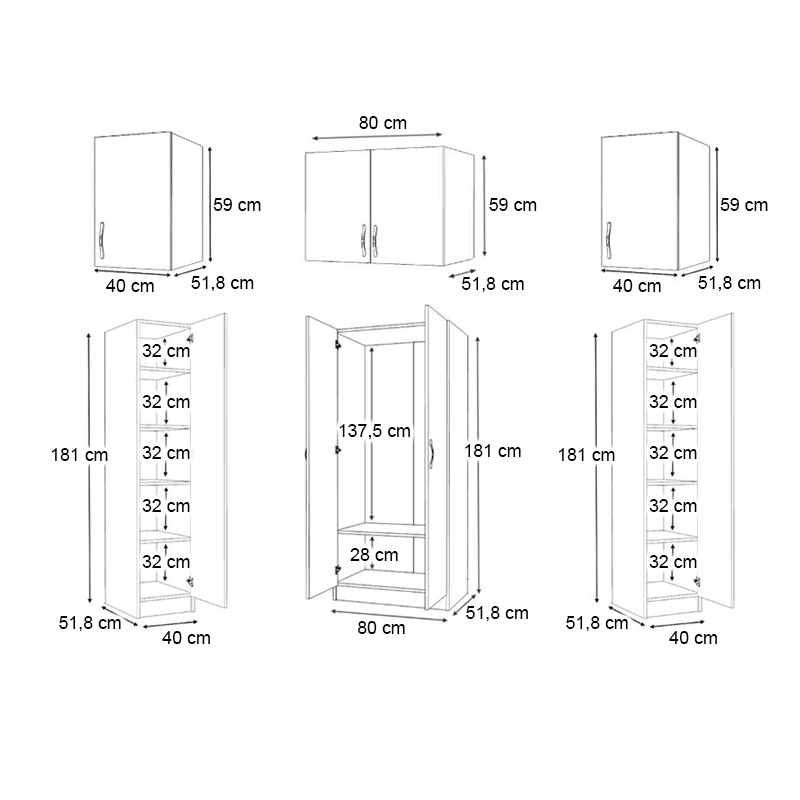 Ντουλάπα ρούχων Vivian τετράφυλλη με πατάρι χρώμα φυσικό οξιάς 160x51,8x240εκ.