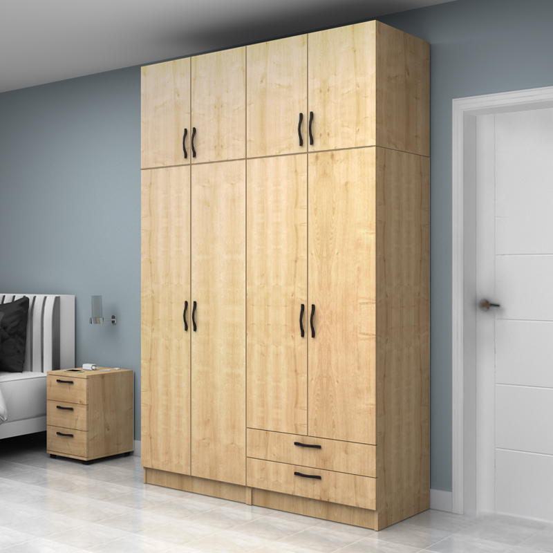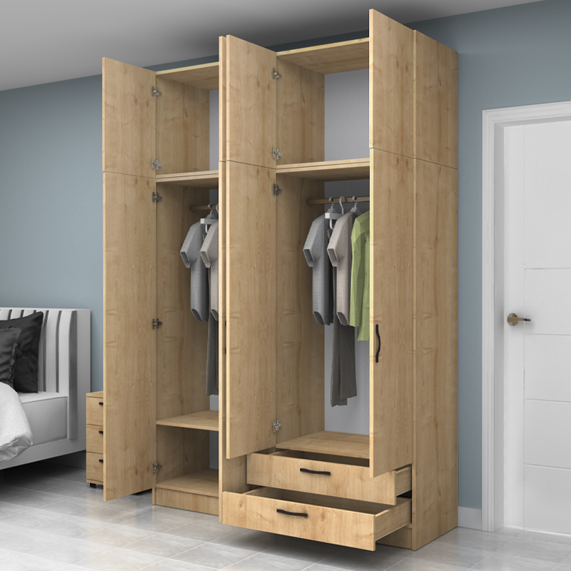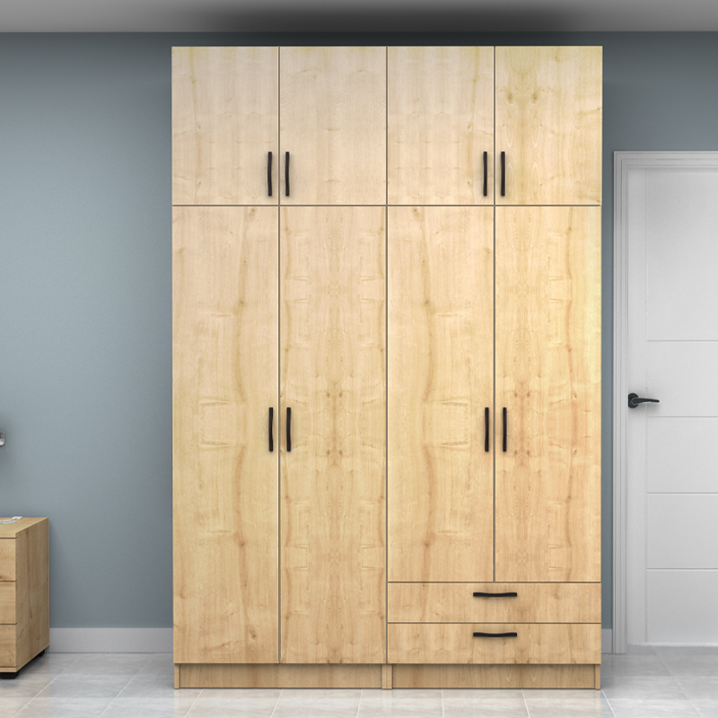 Ντουλάπα ρούχων Vivian τετράφυλλη με πατάρι και συρτάρια χρώμα φυσικό οξιάς 160x51,8x240εκ.