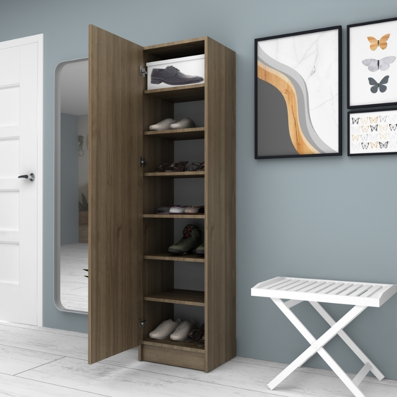 Ντουλάπα ρούχων - παπουτσοθήκη Petro μονόφυλλη χρώμα καρυδί 45x38x180εκ.