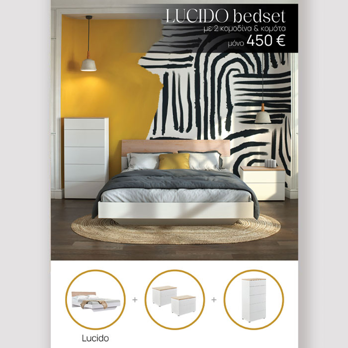 LUCIDO ΚΡΕΒΑΤΟΚΑΜΑΡΑ SET 3+1 ΛΕΥΚΟ OAK ΦΥΣΙΚΟ