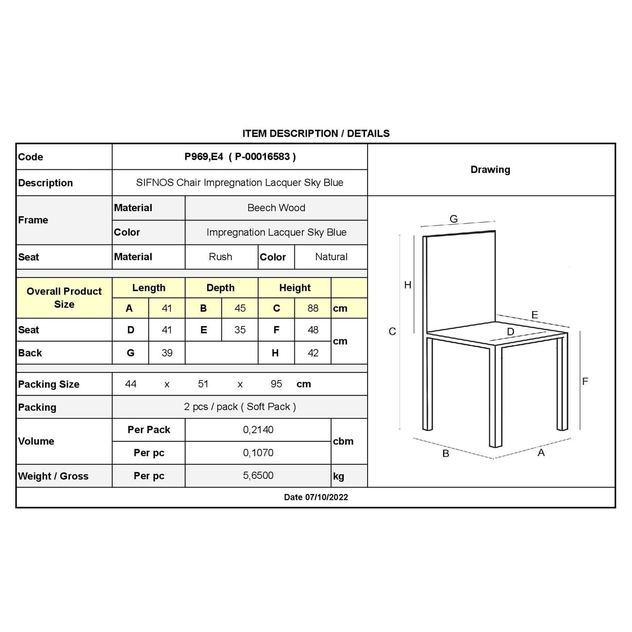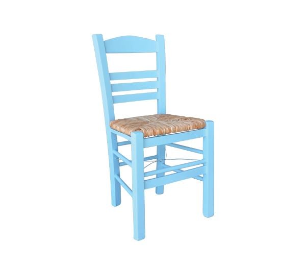 ΣΙΦΝΟΣ Καρέκλα Οξιά Βαφή Εμποτισμού Λάκα Γαλάζιο, Κάθισμα Ψάθα