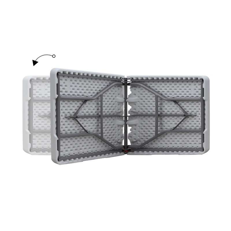 - Όταν το τραπέζι δεν χρησιμοποιείται, τα πόδια αναδιπλώνονται κάτω από την επιφάνεια, στο εσωτερικό της «βαλίτσας», διευκολύνοντας σημαντικά την αποθήκευση και τη μεταφορά του.