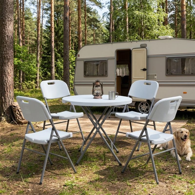 Τραπέζι catering - συνεδρίου Capri πτυσσόμενο - στρογγυλό μονοκόμματη επιφάνεια χρώμα λευκό του πάγου Ø80x74εκ.