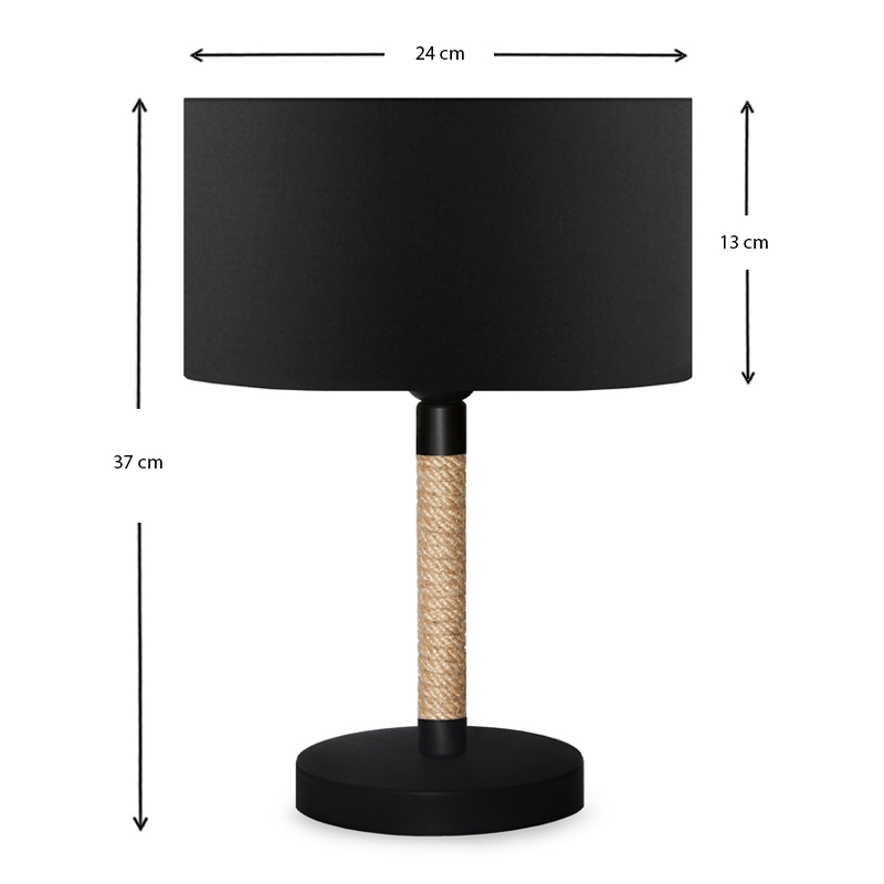 Φωτιστικό επιτραπέζιο Jean ύφασμα/σχοινί/χρώμιο χρώμα μαύρο/φυσικό 24x13x37εκ.