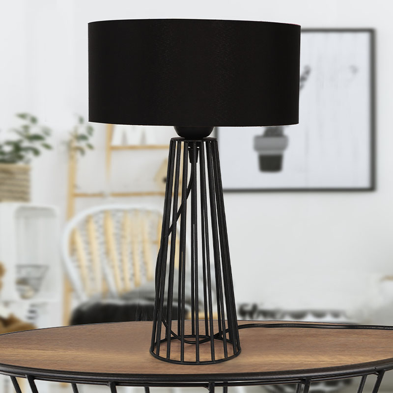 Φωτιστικό επιτραπέζιο Filip E27 μεταλλικό - υφασμάτινο χρώμα μαύρο 25x25x45εκ.