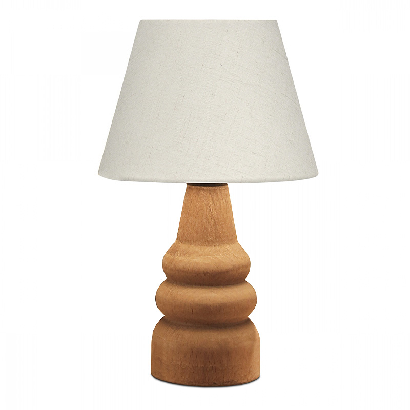 Φωτιστικό επιτραπέζιο Lary E27 υφασμάτινο - ξύλινο χρώμα κρεμ - καφέ Φ24x36εκ.