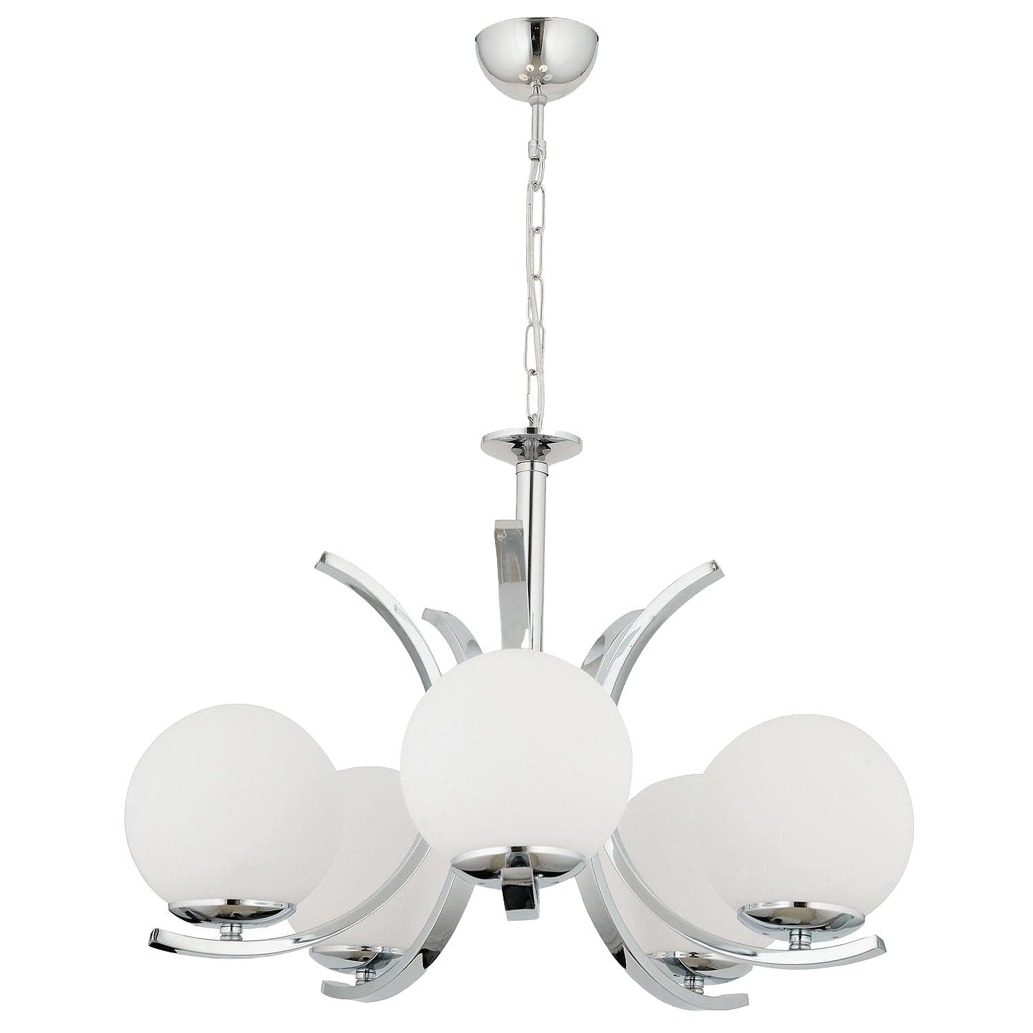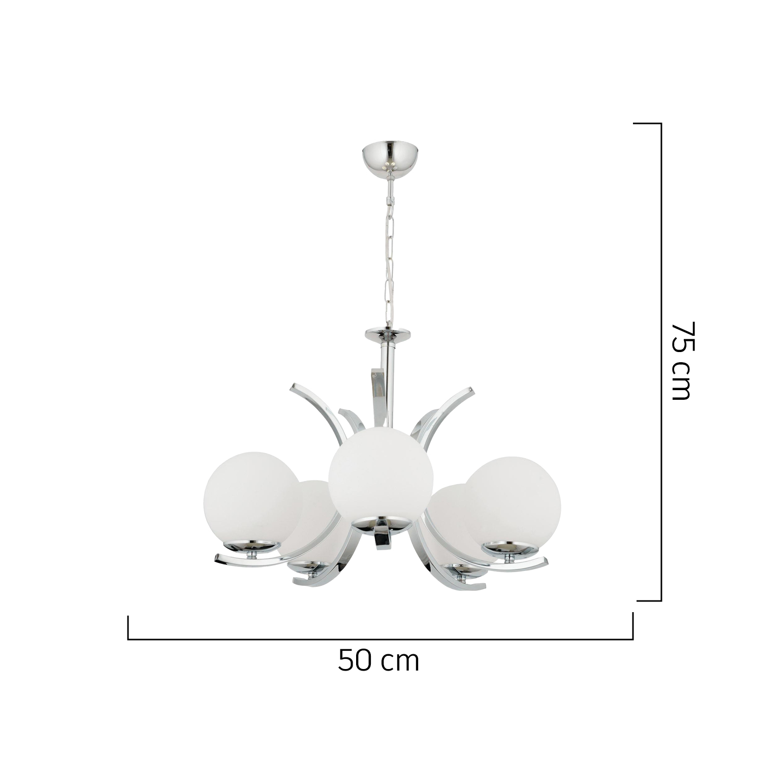 Φωτιστικό κρεμαστό LACERTA πεντάφωτο ασημί/λευκό μέταλλο/γυαλί 50x75cm.