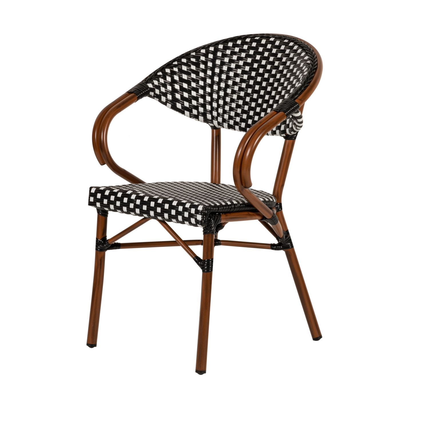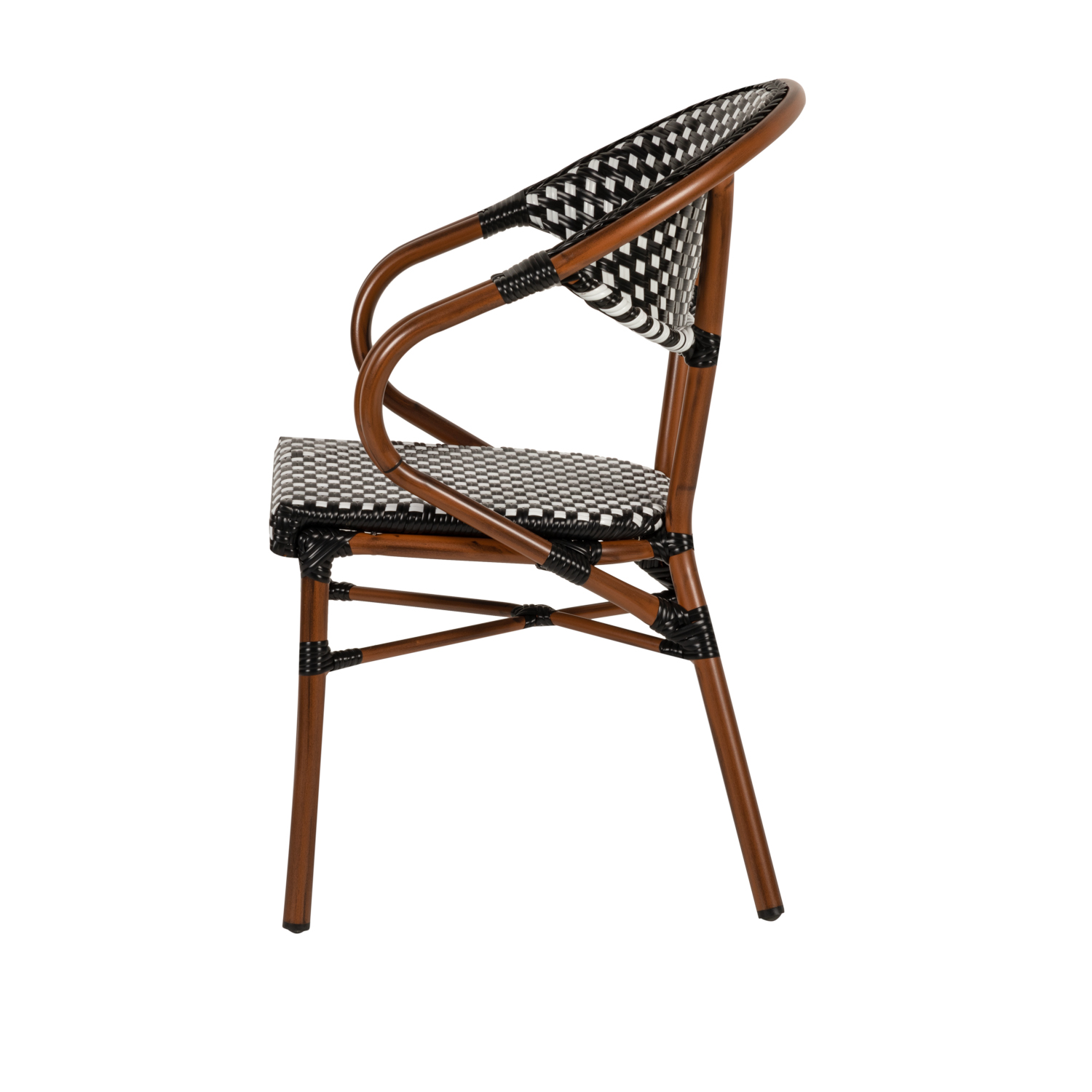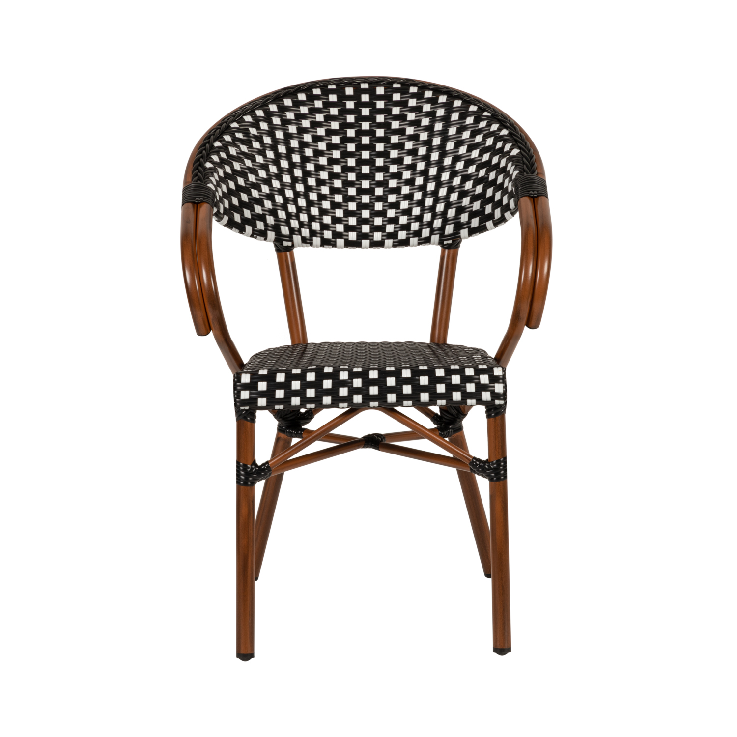Πολυθρόνα Κήπου MUTUMA Λευκό/Μαύρο/Μπαμπού Αλουμίνιο/Rattan 57x60x82cm