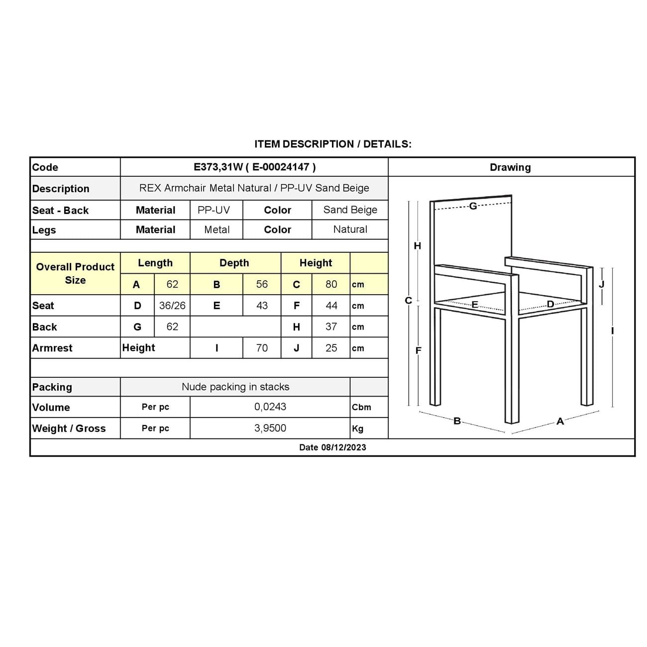 REX Πολυθρόνα-Pro Μέταλλο Βαφή Φυσικό, PP-UV Sand Beige
