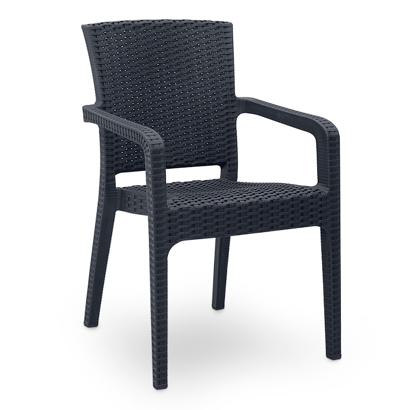 Η πολυθρόνα πολυπροπυλενίου Clio είναι κατασκευασμένη από ανακυκλώσιμο υλικό σε ανθρακί απόχρωση. Ιδανική επιλογή για το μπαλκόνι, τον κήπο σας ή και για επαγγελματική χρήση.