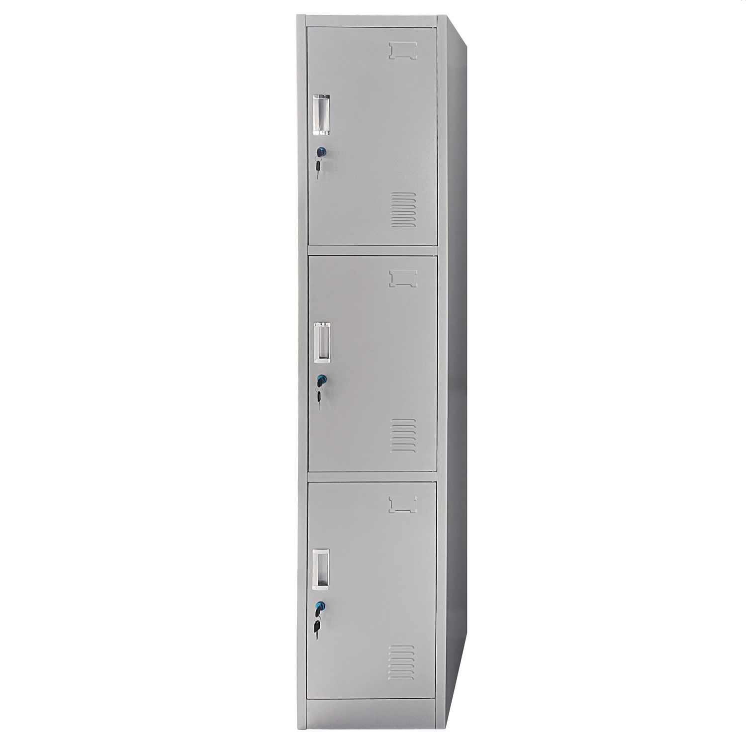 Μεταλλικός φοριαμός ELVEN με τρεις ξεχωριστές πόρτες, κατάλληλη για επαγγελματικούς ή οικιακούς χώρους. Ιδανική για αποθήκευση προσωπικών αντικειμένων με ασφάλεια, χάρη στην ενσωματωμένη κλειδαριά σε κάθε θύρα. Ανθεκτική κατασκευή από μέταλλο με φινίρισμα σε γκρι απόχρωση.