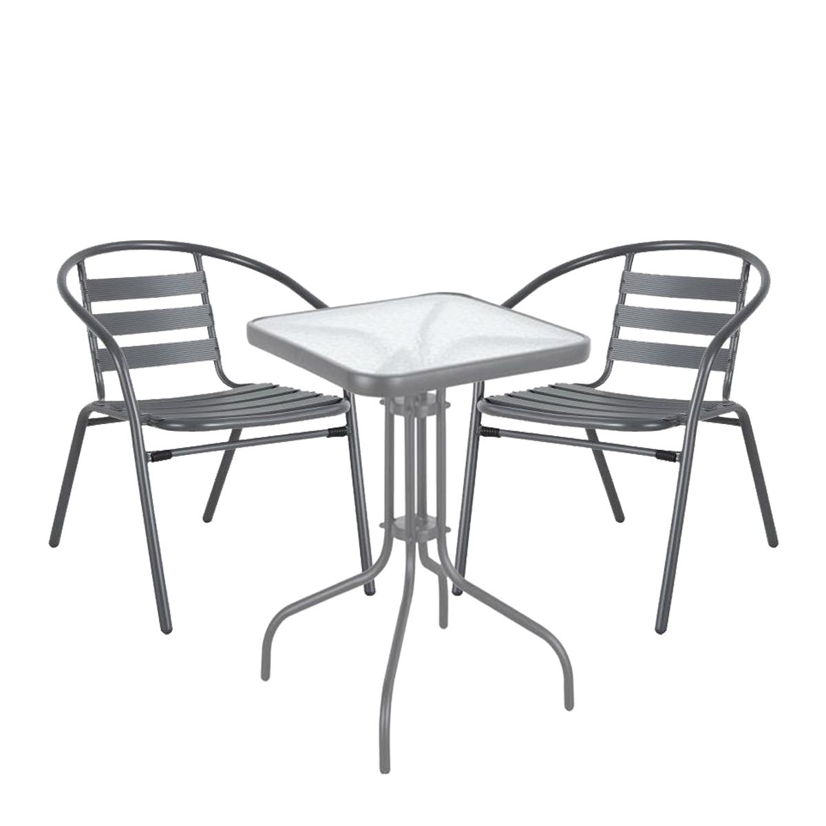 Σετ Τραπεζαρία Κήπου MARS Μέταλλο Γκρι Με 2 Πολυθρόνες