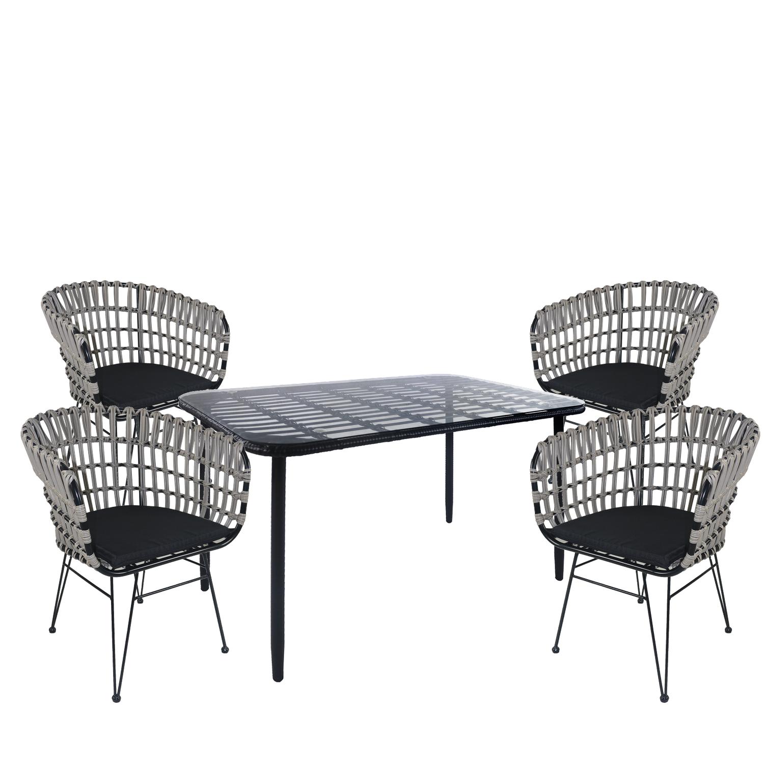 Σετ Τραπεζαρία Κήπου ANNIUS Μαύρο Μέταλλο/Rattan/Γυαλί Με 4 Καρέκλες
