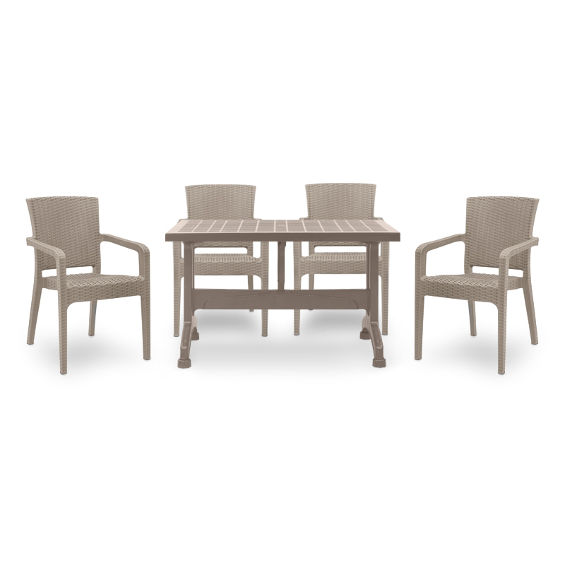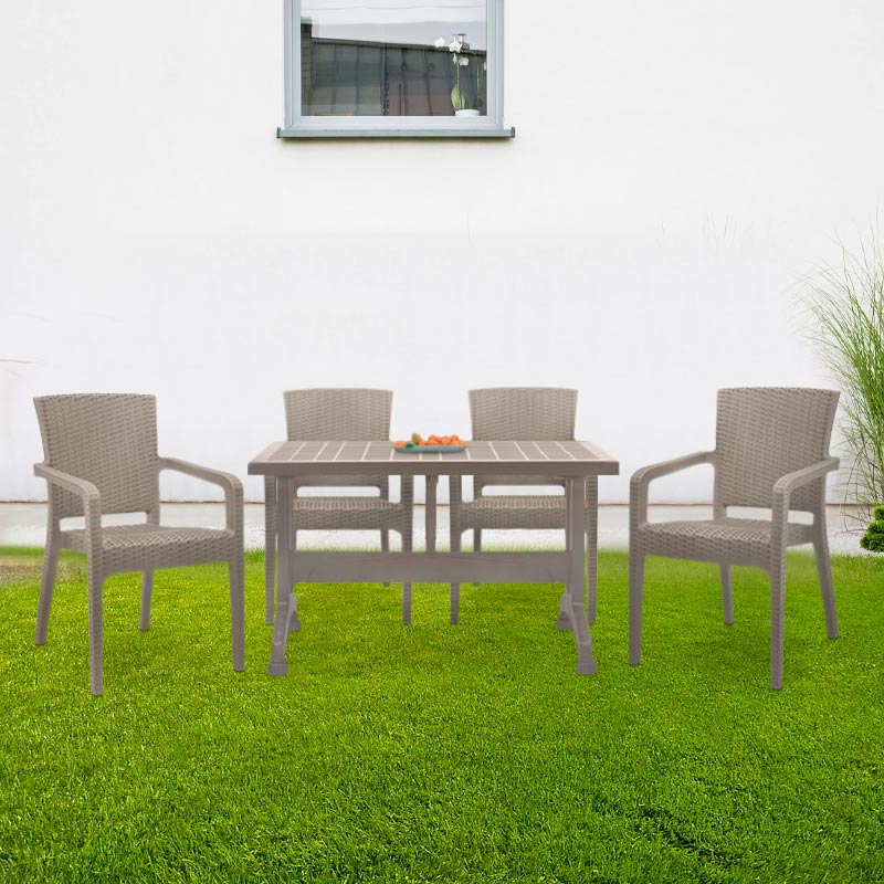 Σετ τραπεζαρία κήπου Callan 5τμχ πολυπροπυλενίου τραπέζι 120x70 - πολυθρόνα recycled χρώμα cappuccino