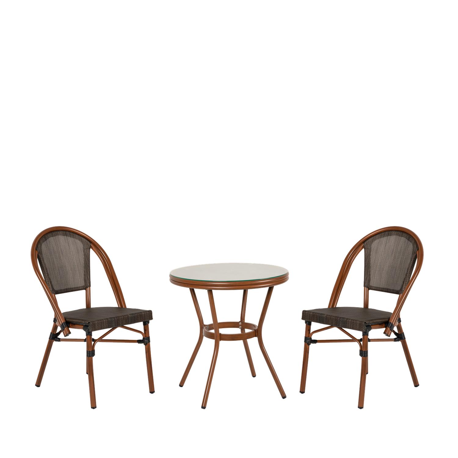 Σετ Τραπεζαρία Κήπου BURUNDI Μπαμπού Αλουμίνιο/Γυαλί Με 2 Καρέκλες