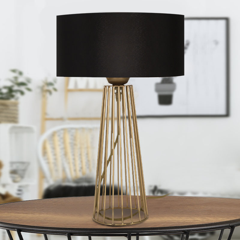 Φωτιστικό επιτραπέζιο Filip E27 μεταλλικό - υφασμάτινο χρώμα χρυσό - μαύρο 25x25x45εκ.