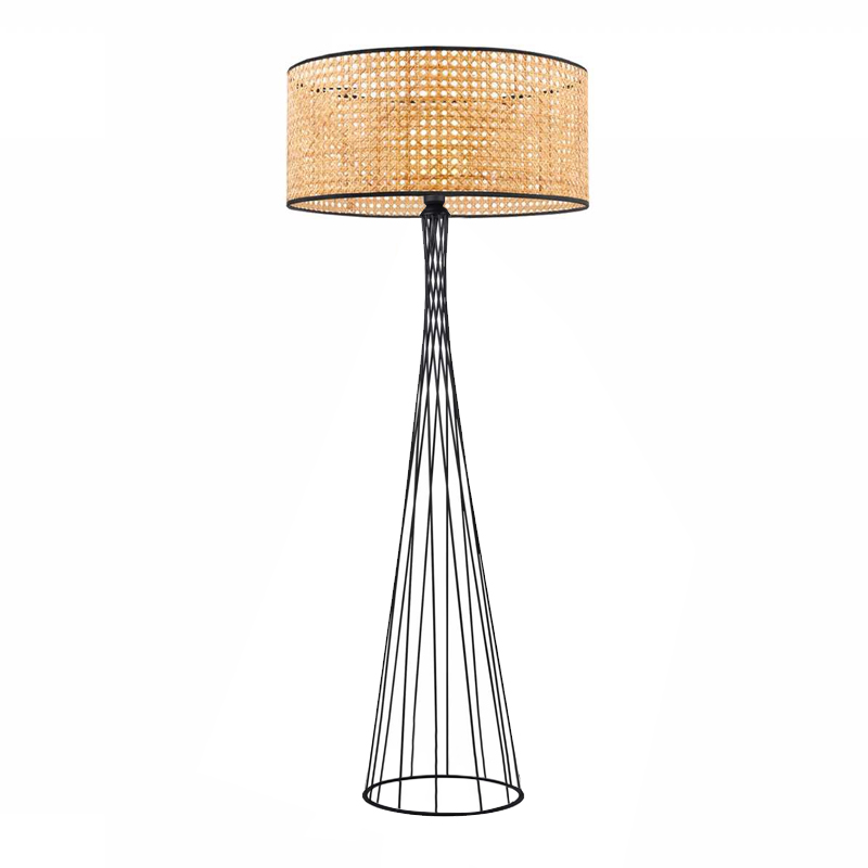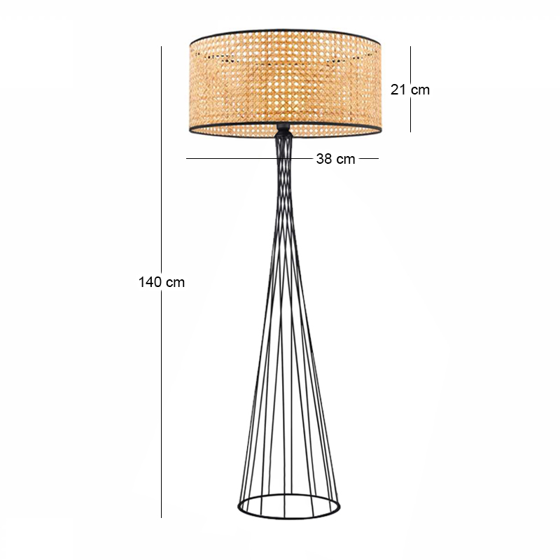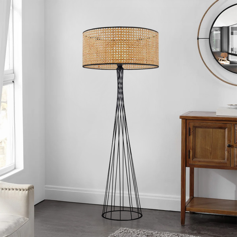 Φωτιστικό δαπέδου Solin E27 μεταλλικό - ρατάν χρώμα μαύρο - φυσικό Ø38x140εκ.